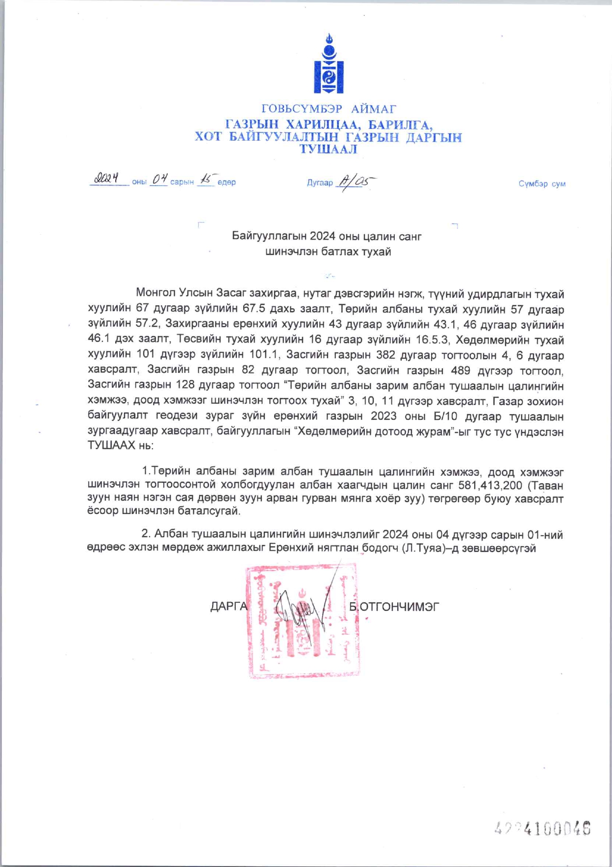ЗАСГИЙН ГАЗРЫН ТОГТООЛ