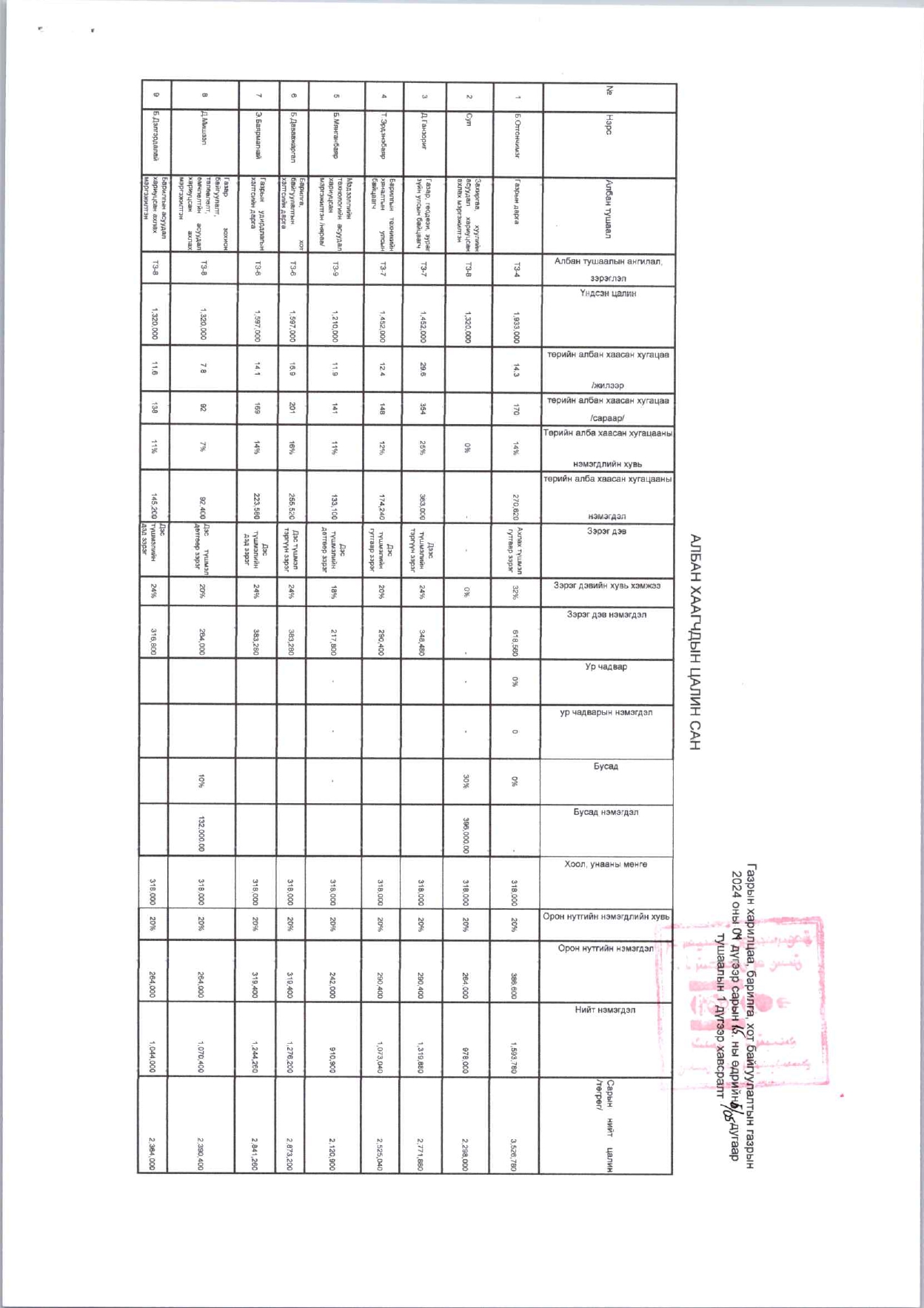 Байгууллагын 2024 оны бүтэц орон тоо, цалин санг батлах тухай