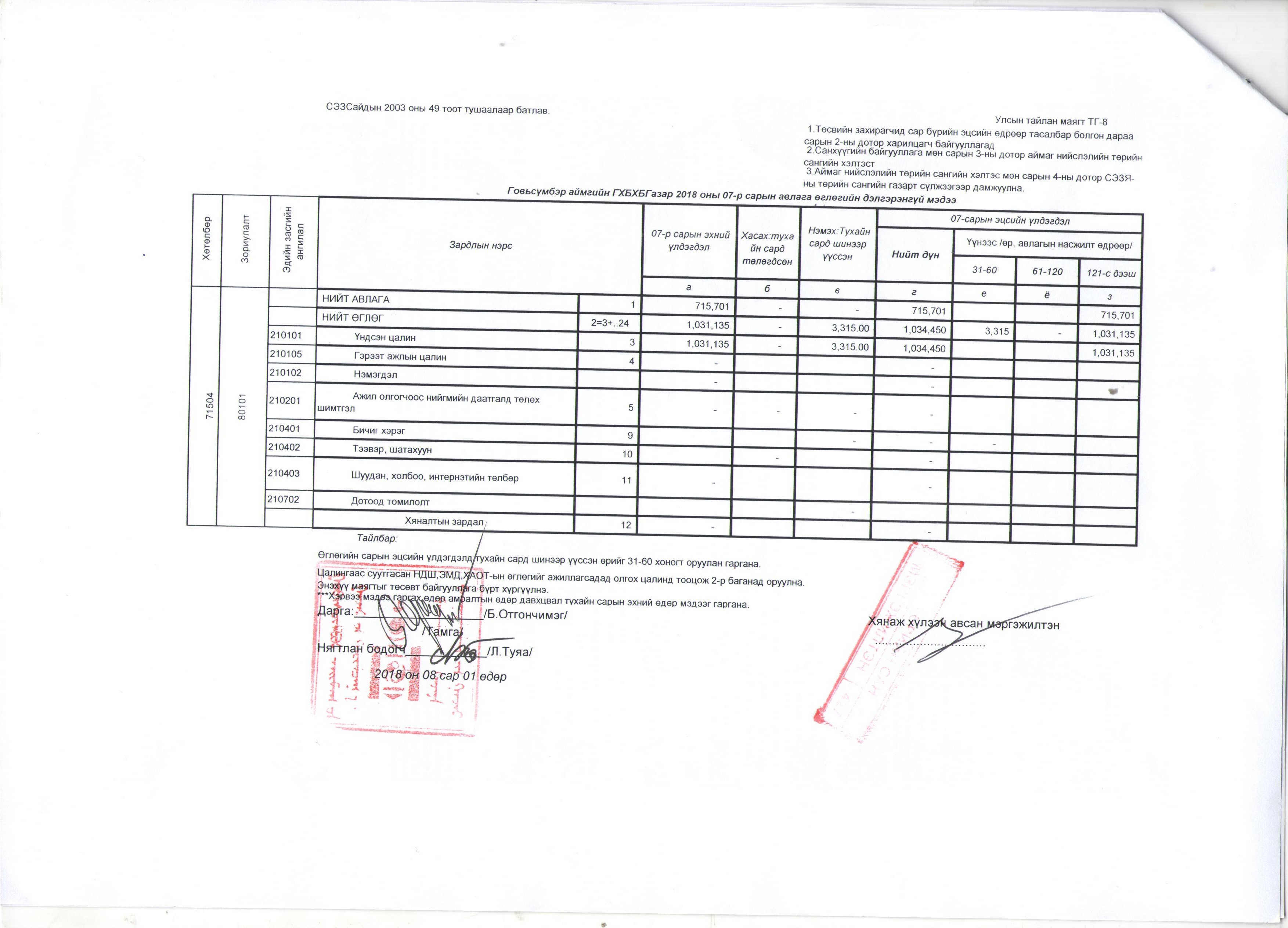 Төсвийн гүйцэтгэлийн 7 дугаар сарын мэдээ