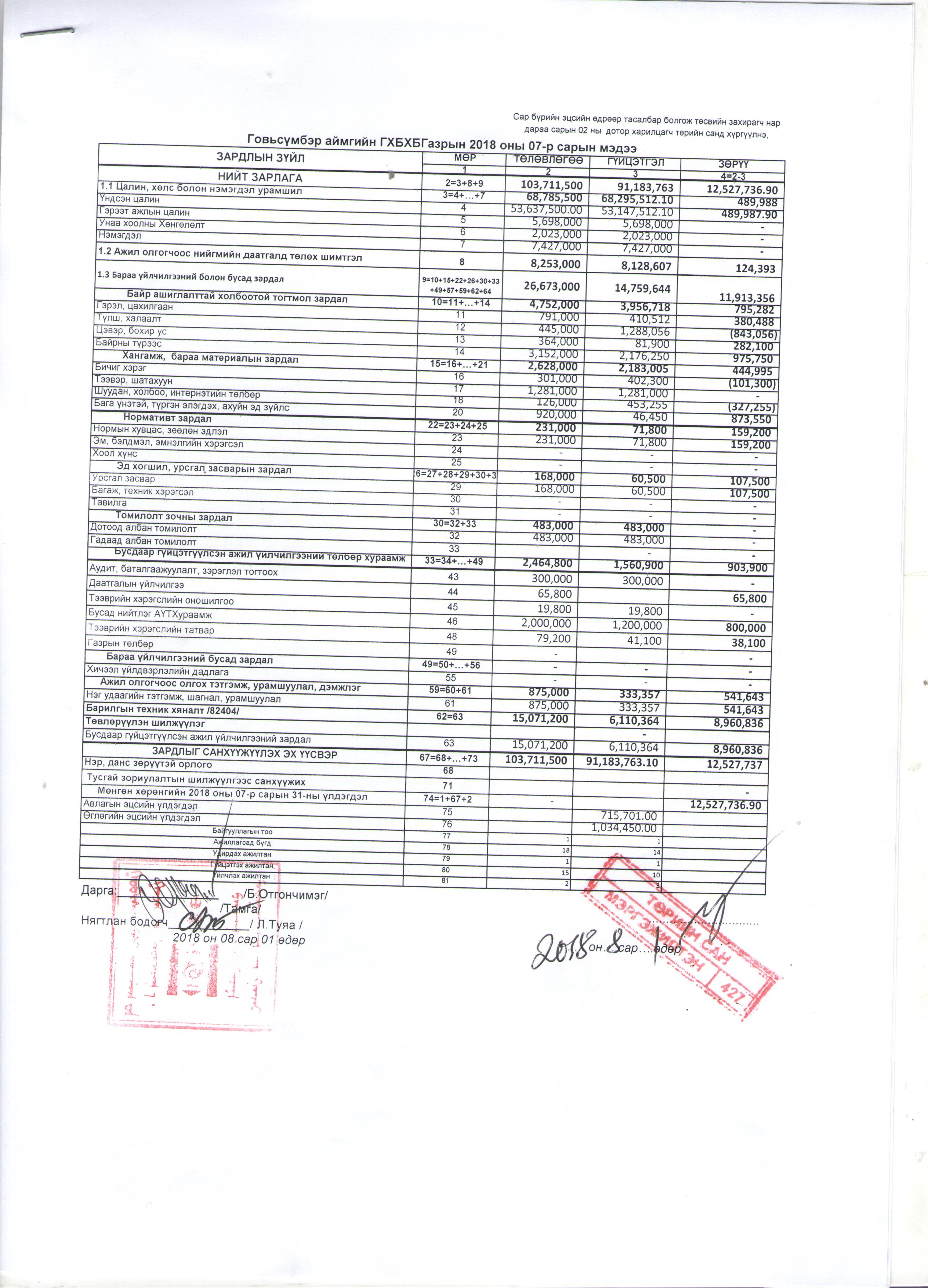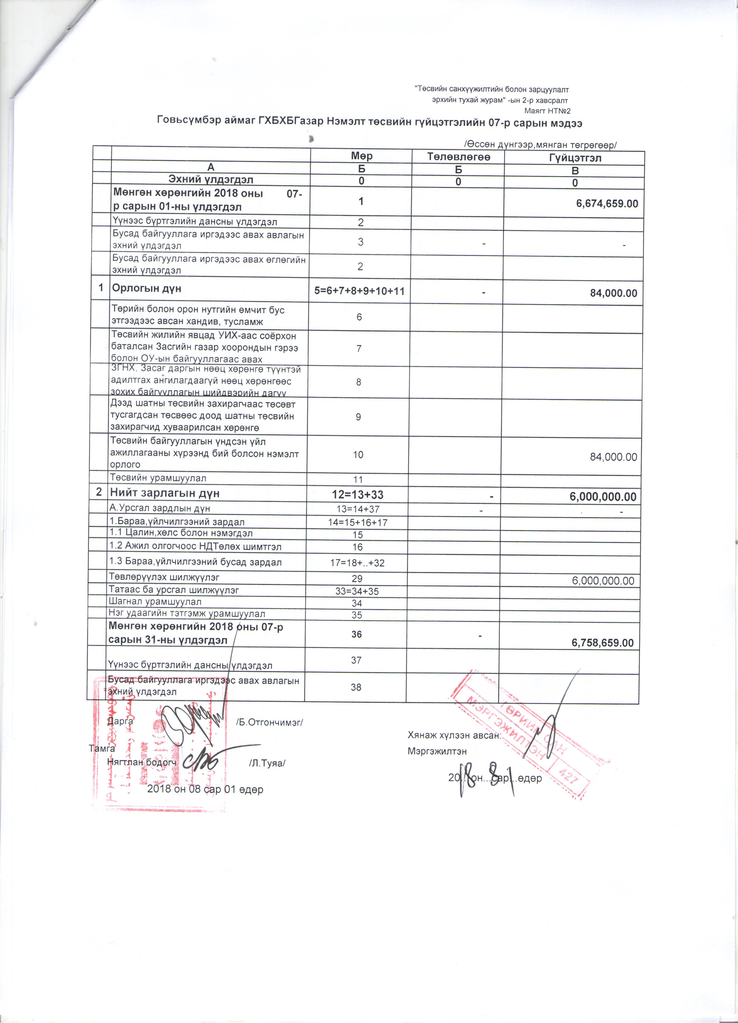 ТӨСВИЙН ГҮЙЦЭТГЭЛИЙН БИЕЛЭЛТ БОЛОН ХАГАС БҮТЭН ЖИЛИЙН САНХҮҮГИЙН ТАЙЛАН