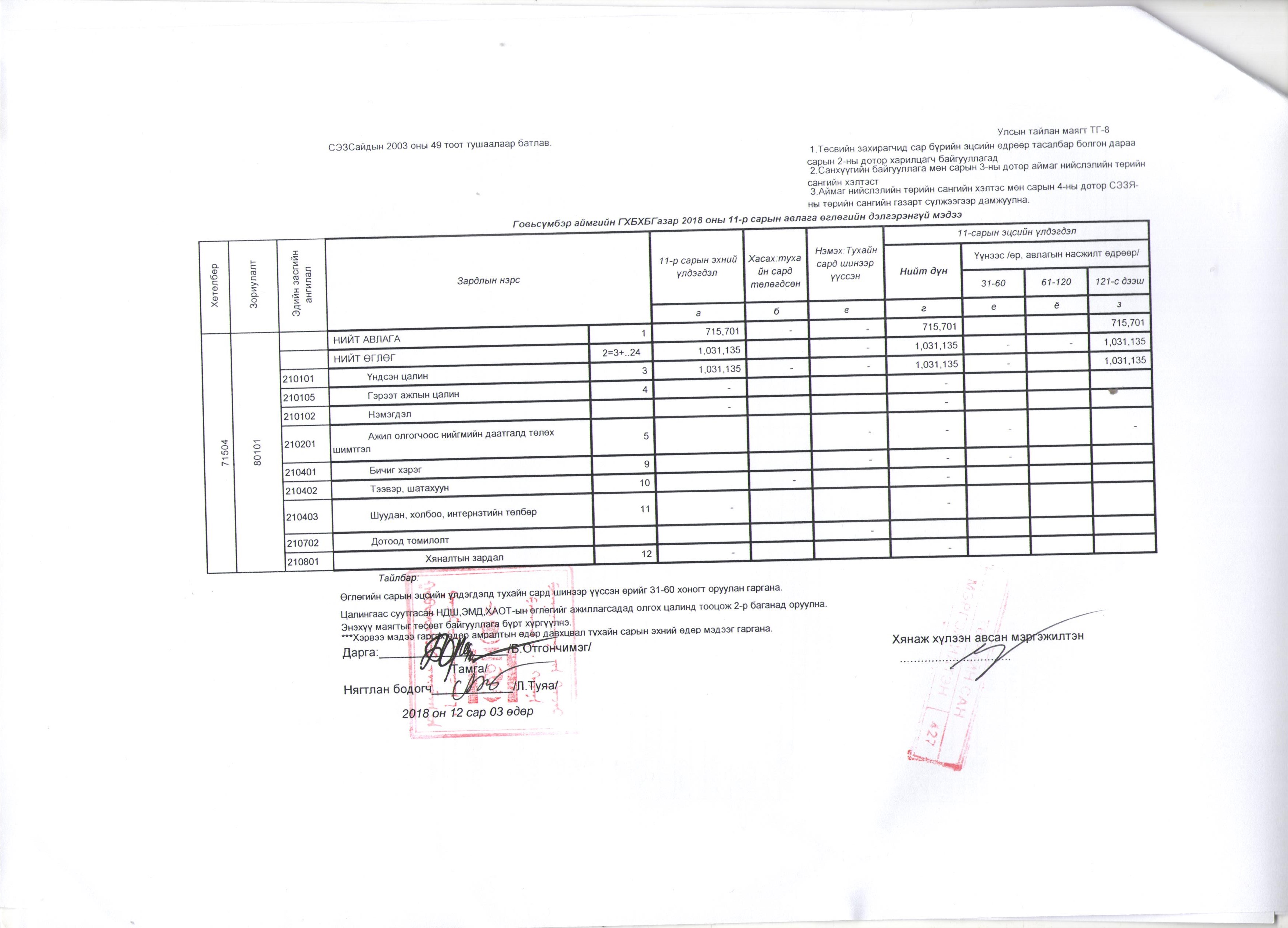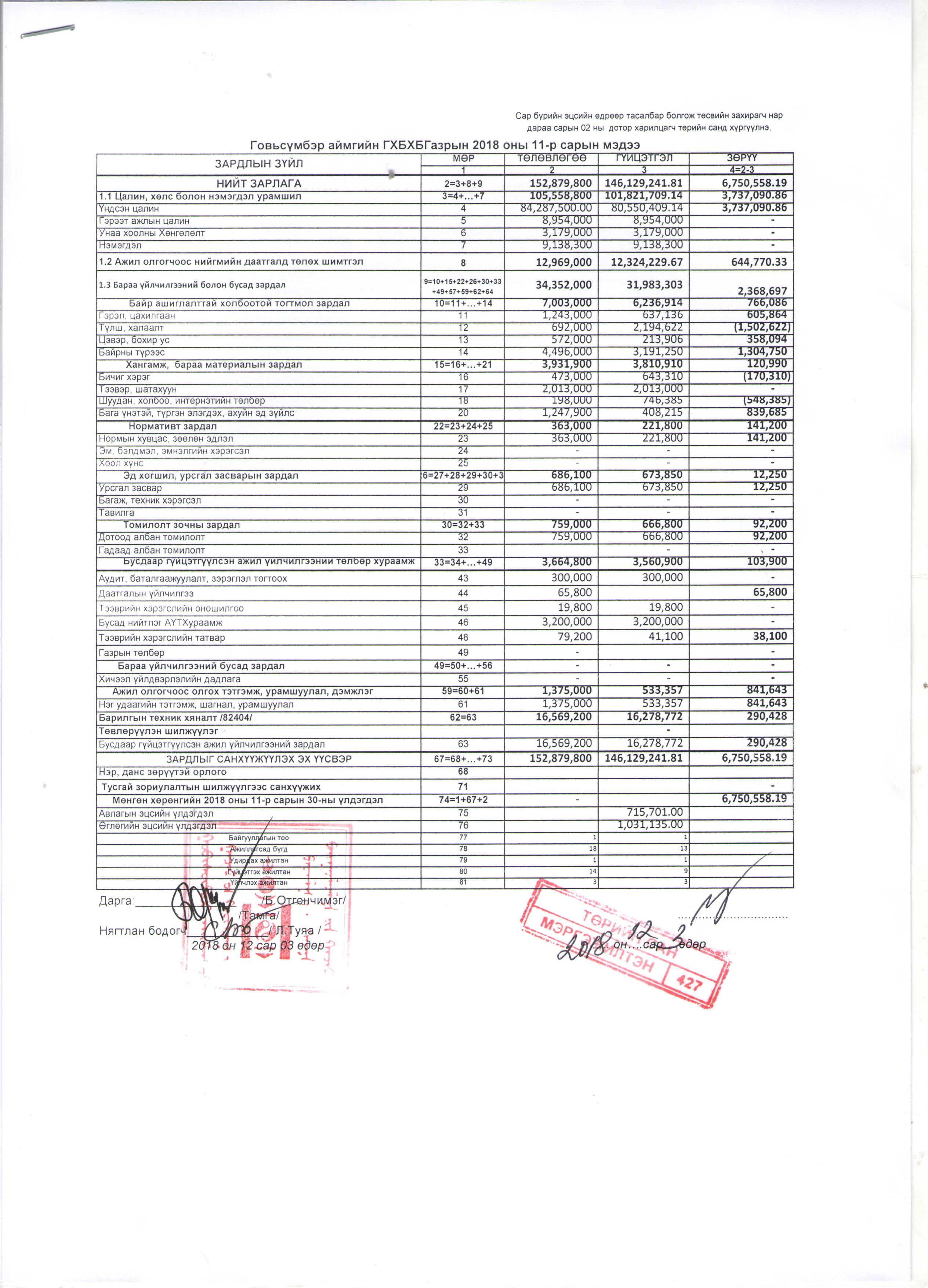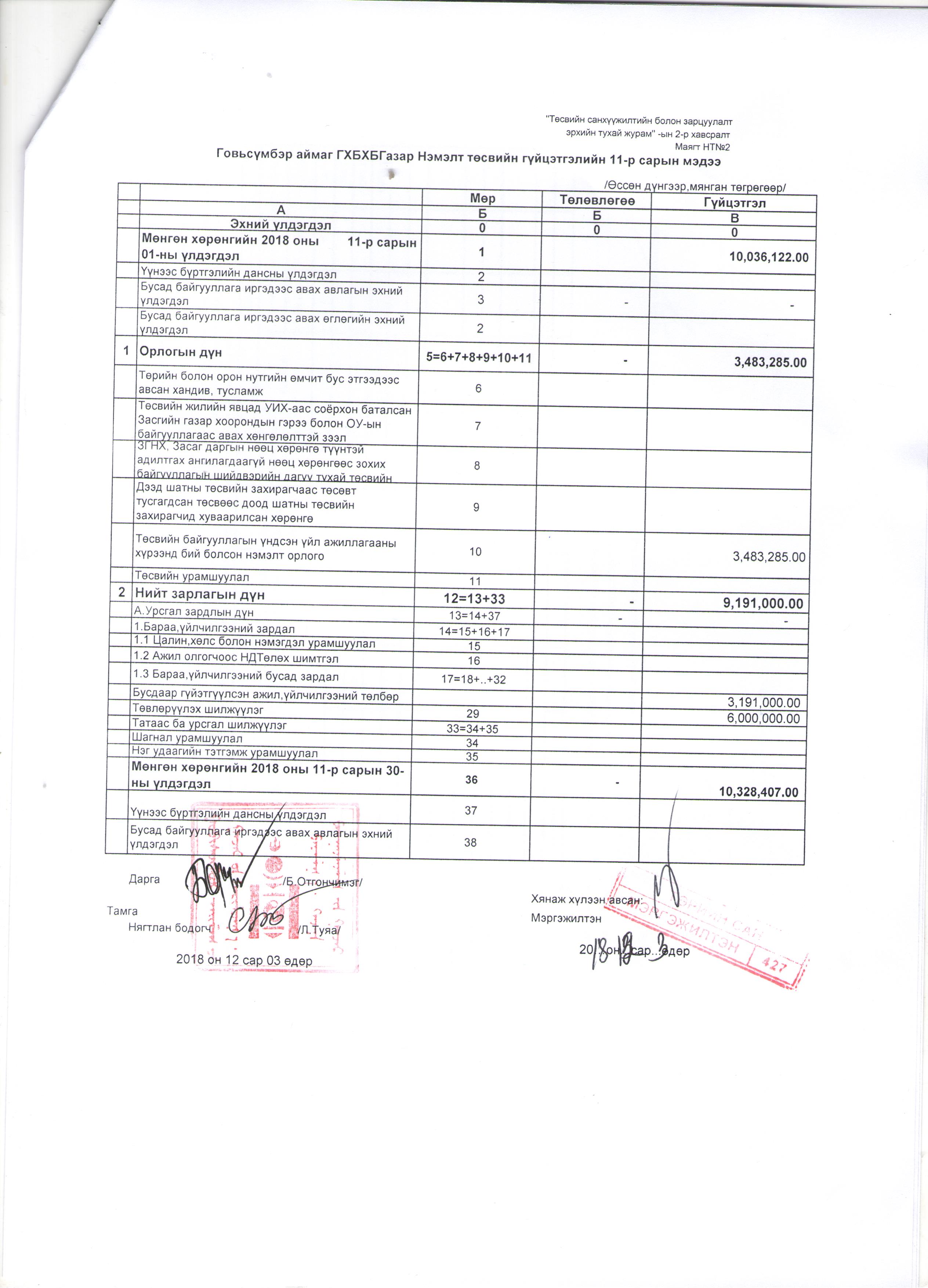 Төсвийн гүйцэтгэлийн 11 дугаар сарын мэдээ