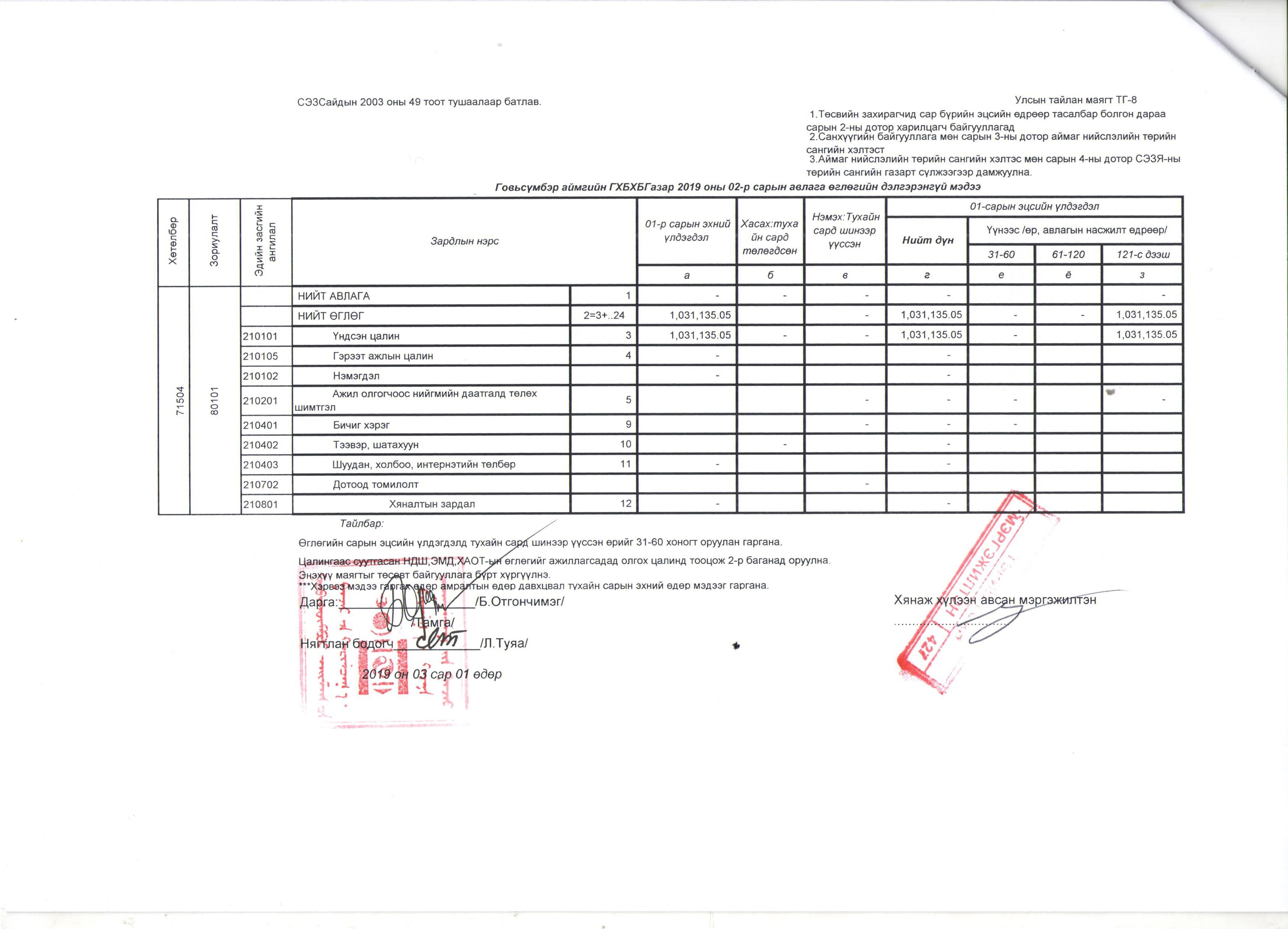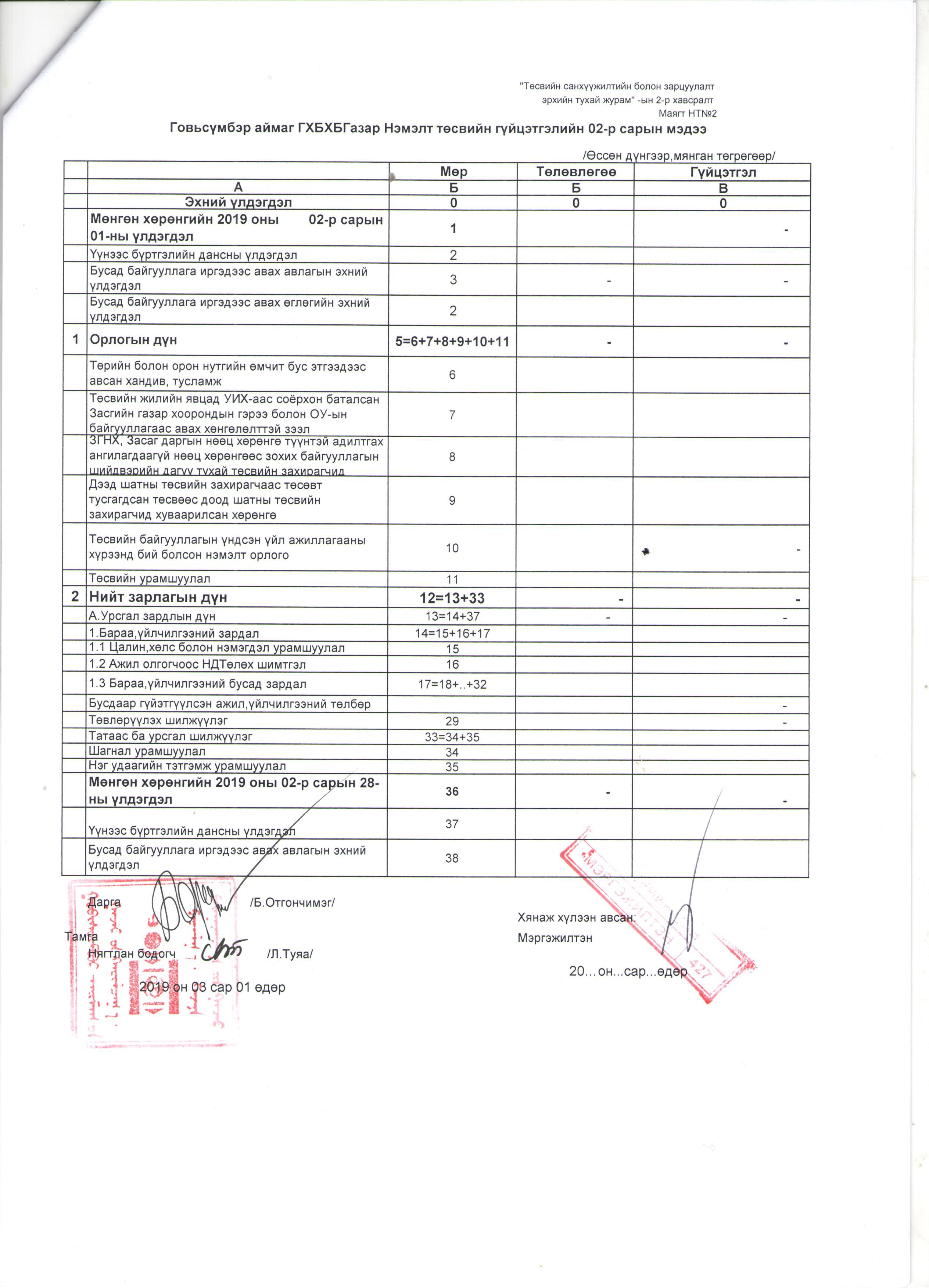 2019 Төсвийн гүйцэтгэлийн 2 дугаар сарын мэдээ