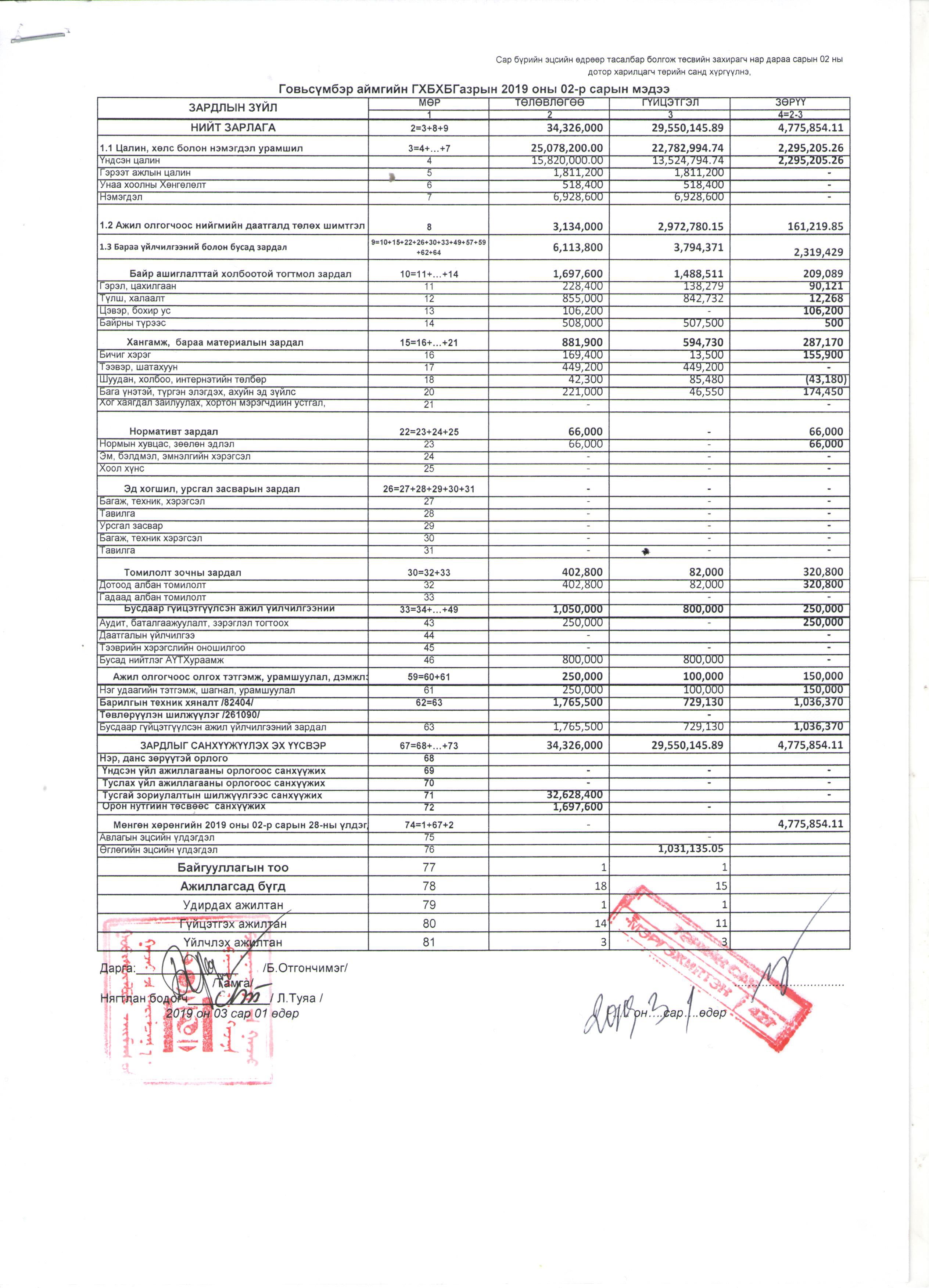 ТӨСВИЙН ГҮЙЦЭТГЭЛИЙН БИЕЛЭЛТ БОЛОН ХАГАС БҮТЭН ЖИЛИЙН САНХҮҮГИЙН ТАЙЛАН
