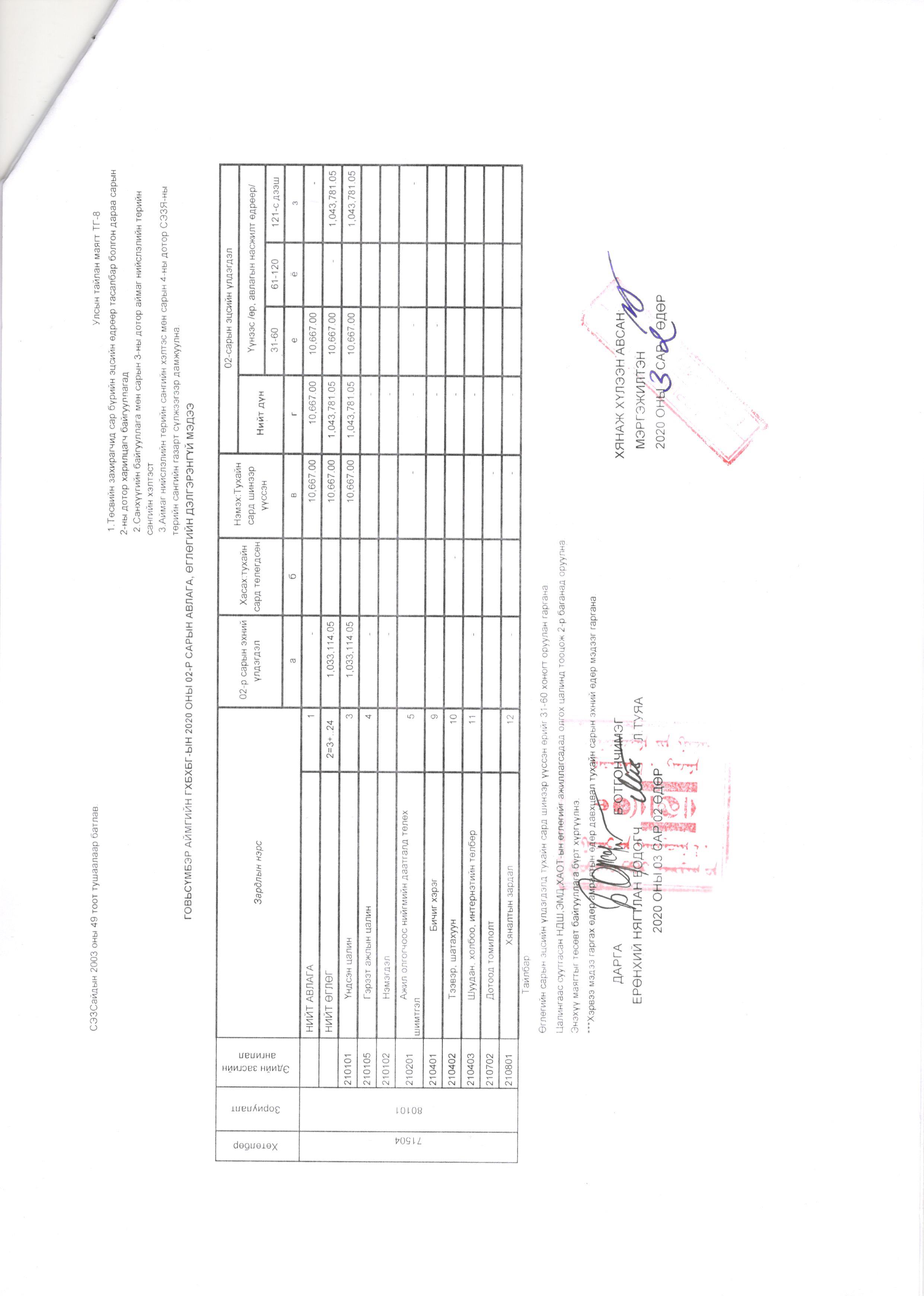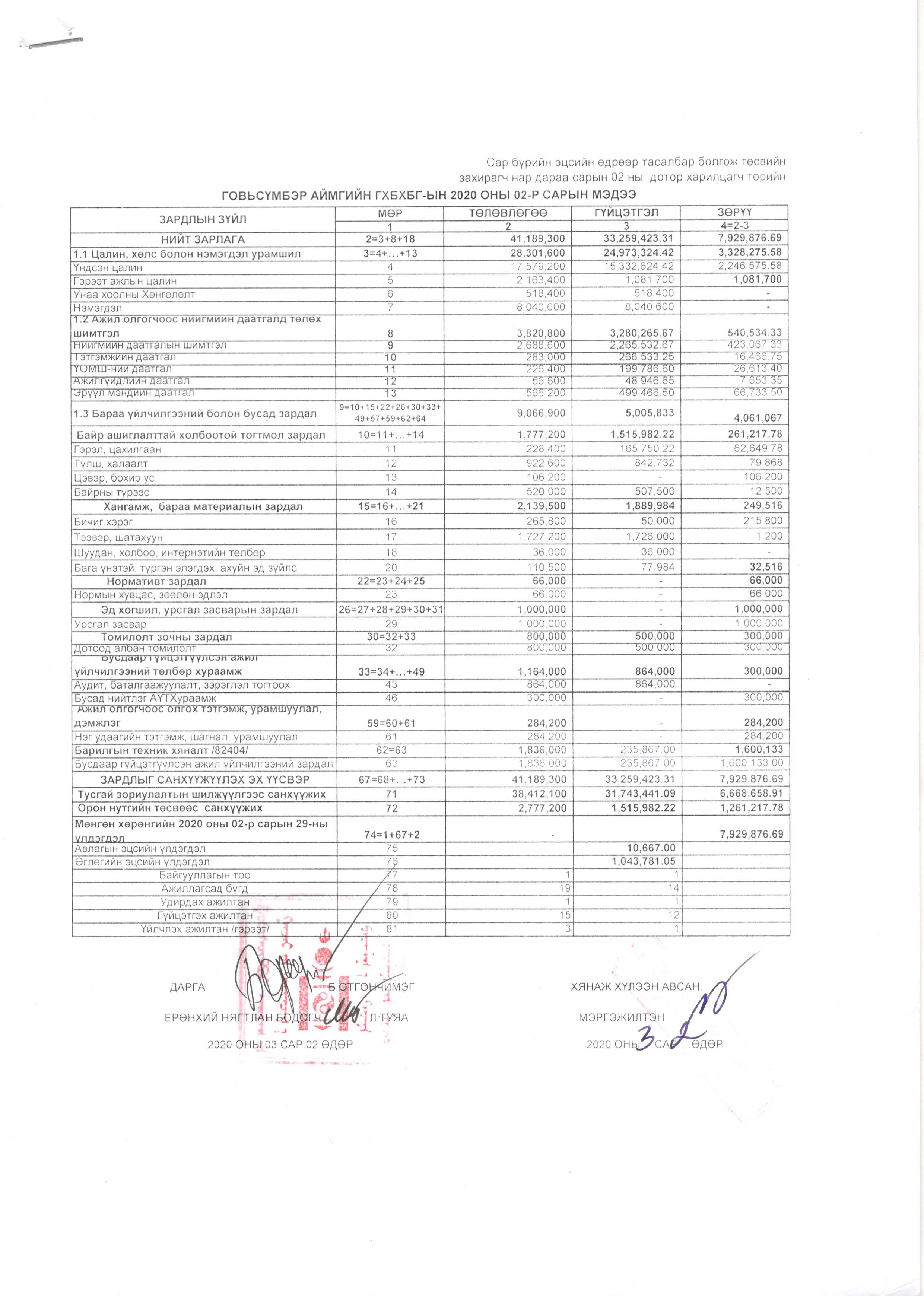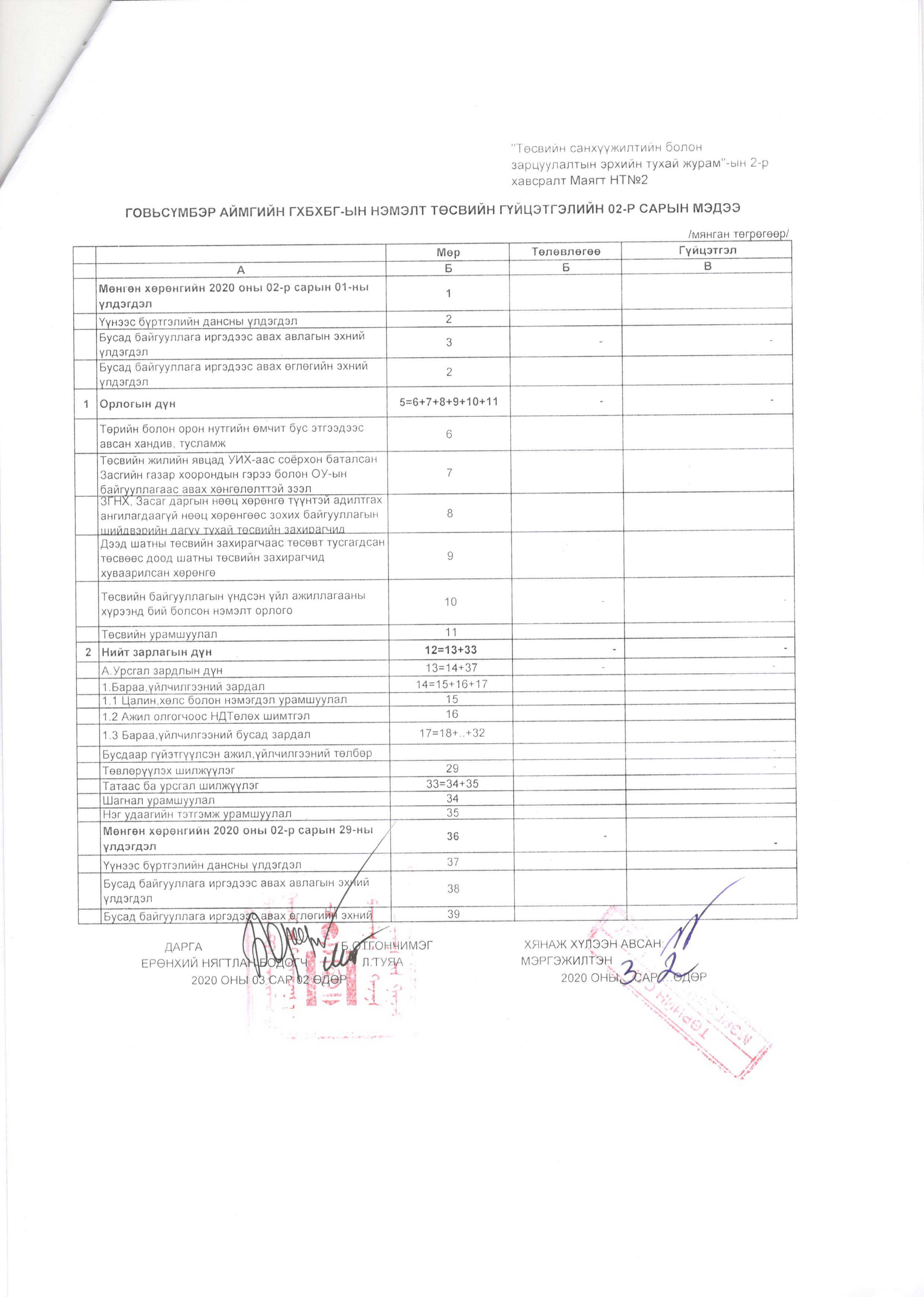 2020 ОНЫ ТӨСВИЙН ГҮЙЦЭТГЭЛИЙН 2 ДУГААР САРЫН МЭДЭЭ
