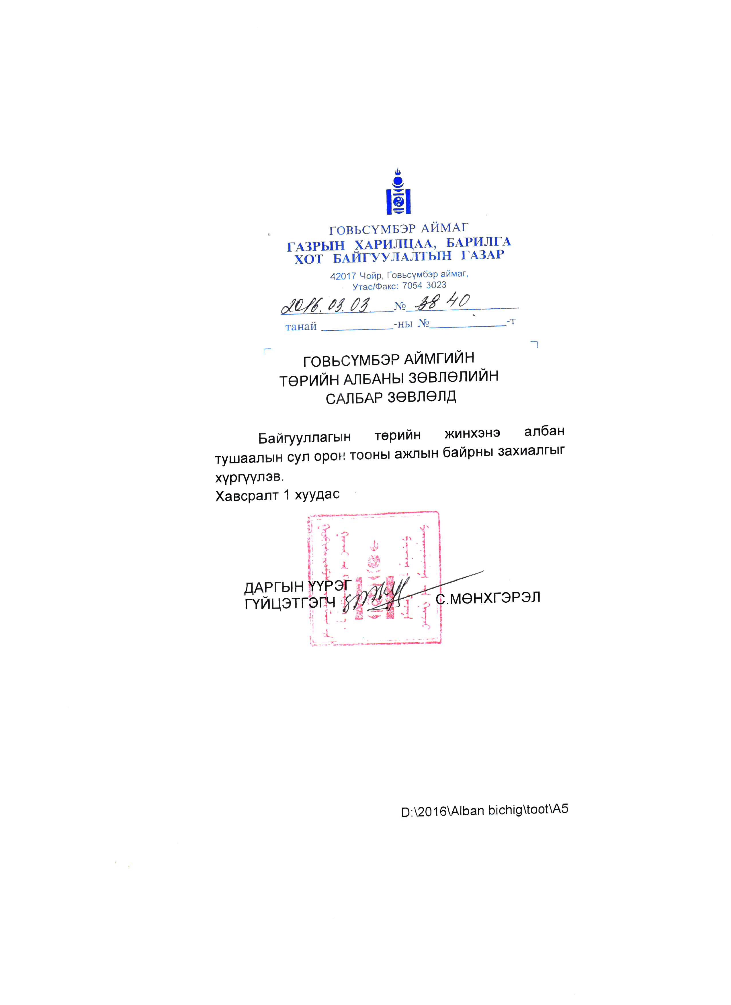 ЗАСГИЙН ГАЗРЫН ТОГТООЛ