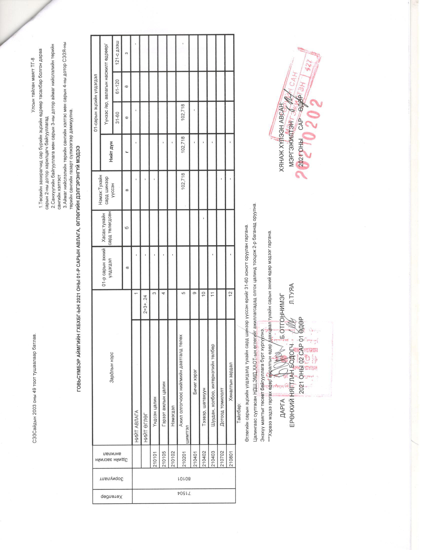 САНХҮҮГИЙН ХЯНАЛТ ШАЛГАЛТЫН ТАЙЛАН, АКТ, ДҮГНЭЛТ АЛБАН ШААРДЛАГА ЗӨВЛӨМЖ