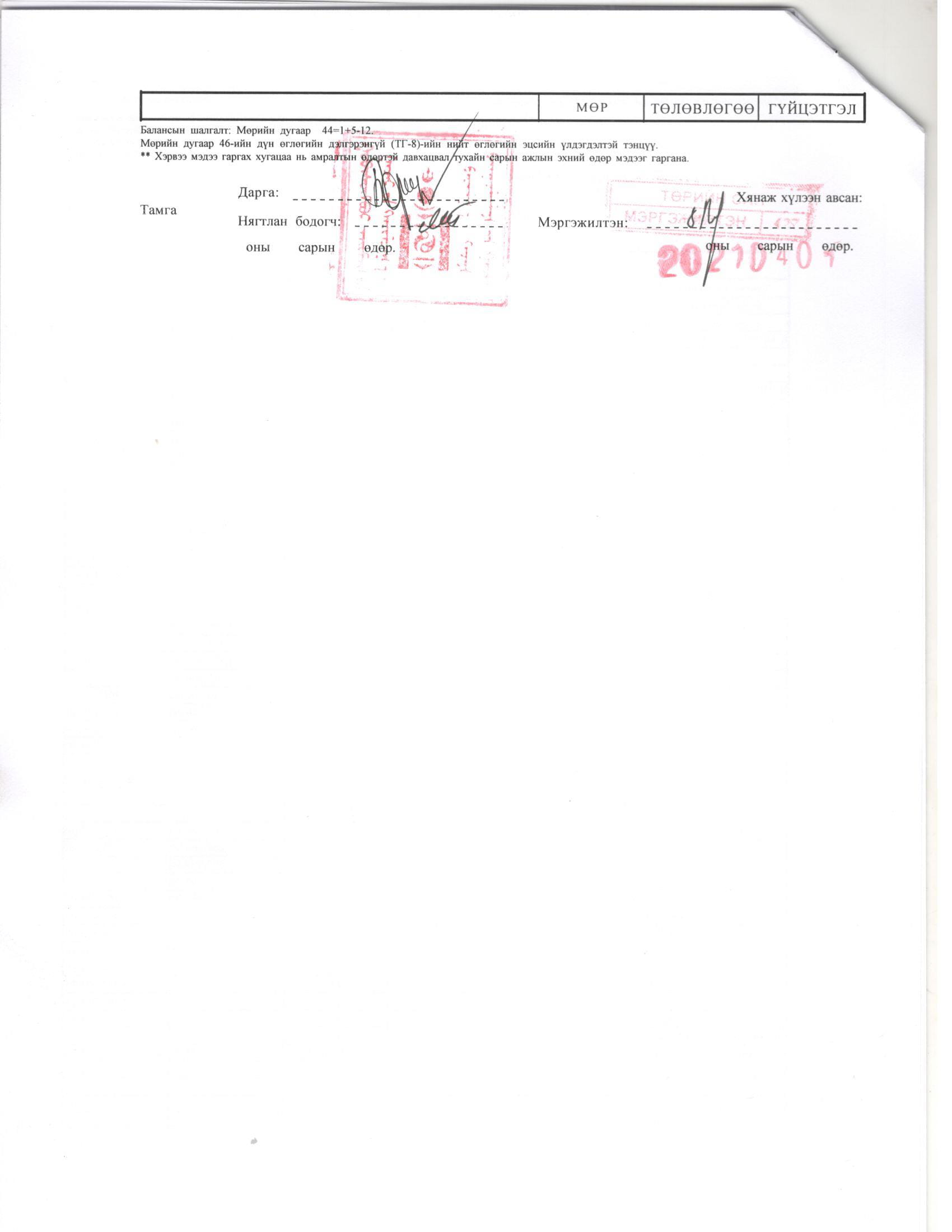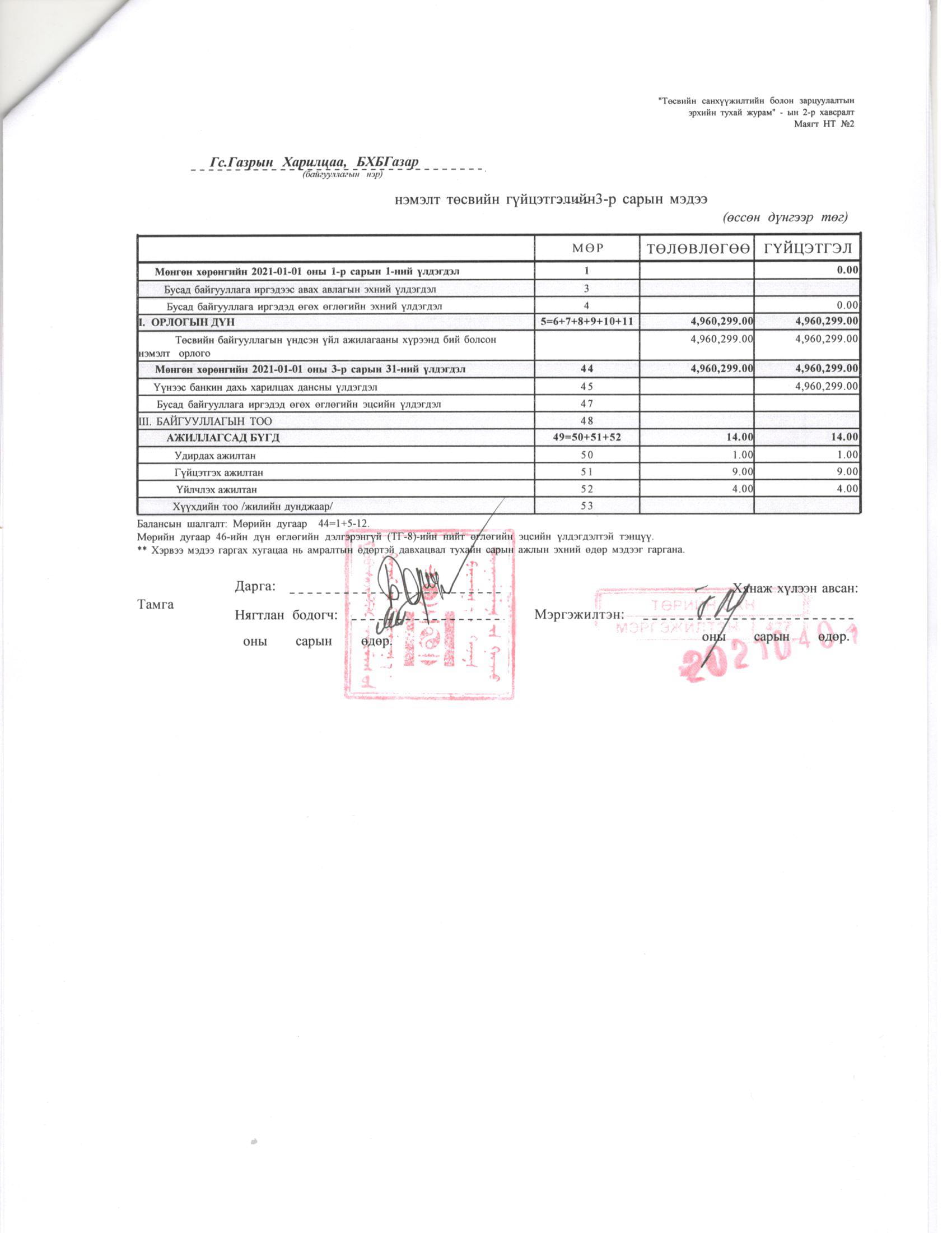 ТӨСВИЙН ГҮЙЦЭТГЭЛИЙН МЭДЭЭ