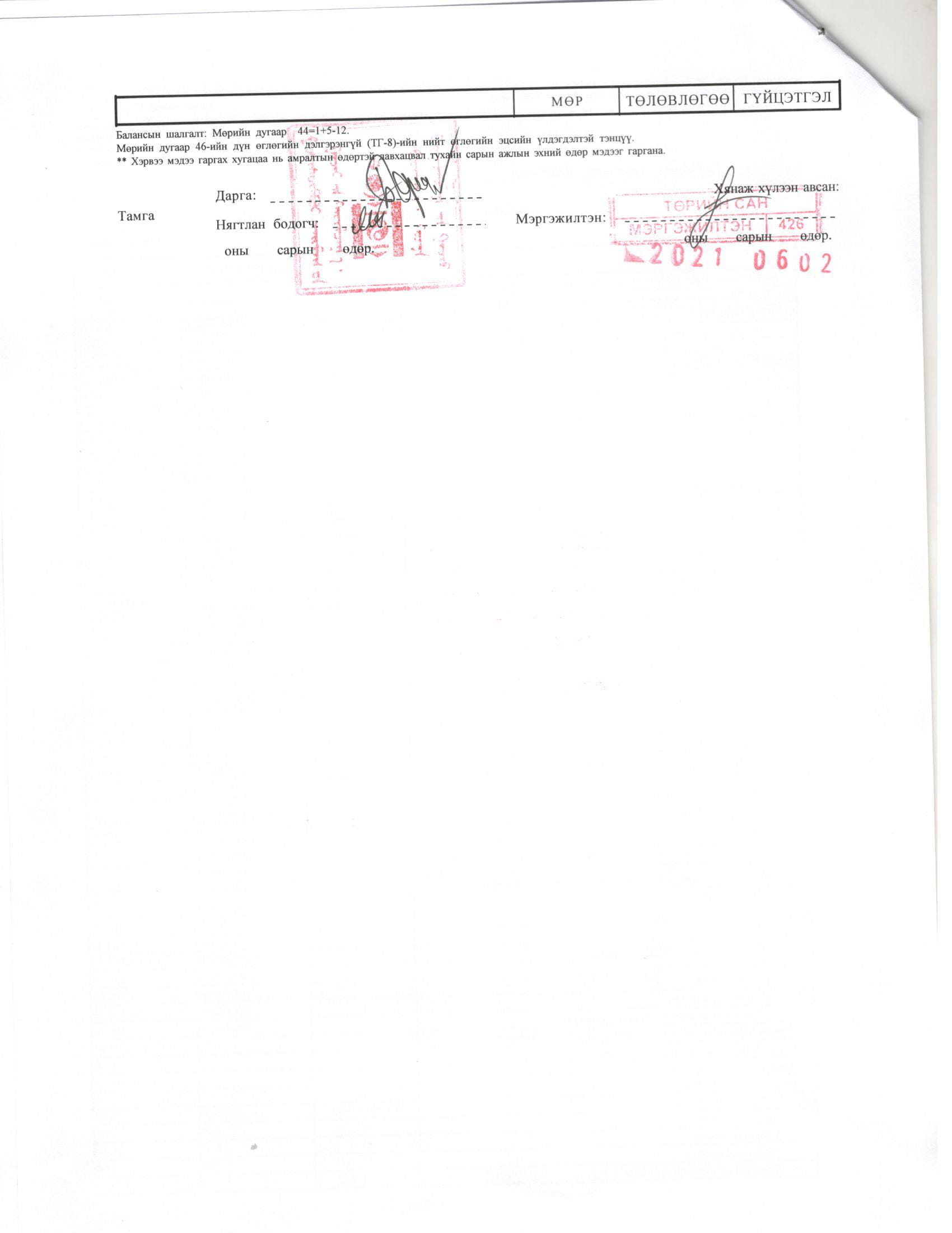 ТӨСВИЙН ГҮЙЦЭТГЭЛИЙН МЭДЭЭ