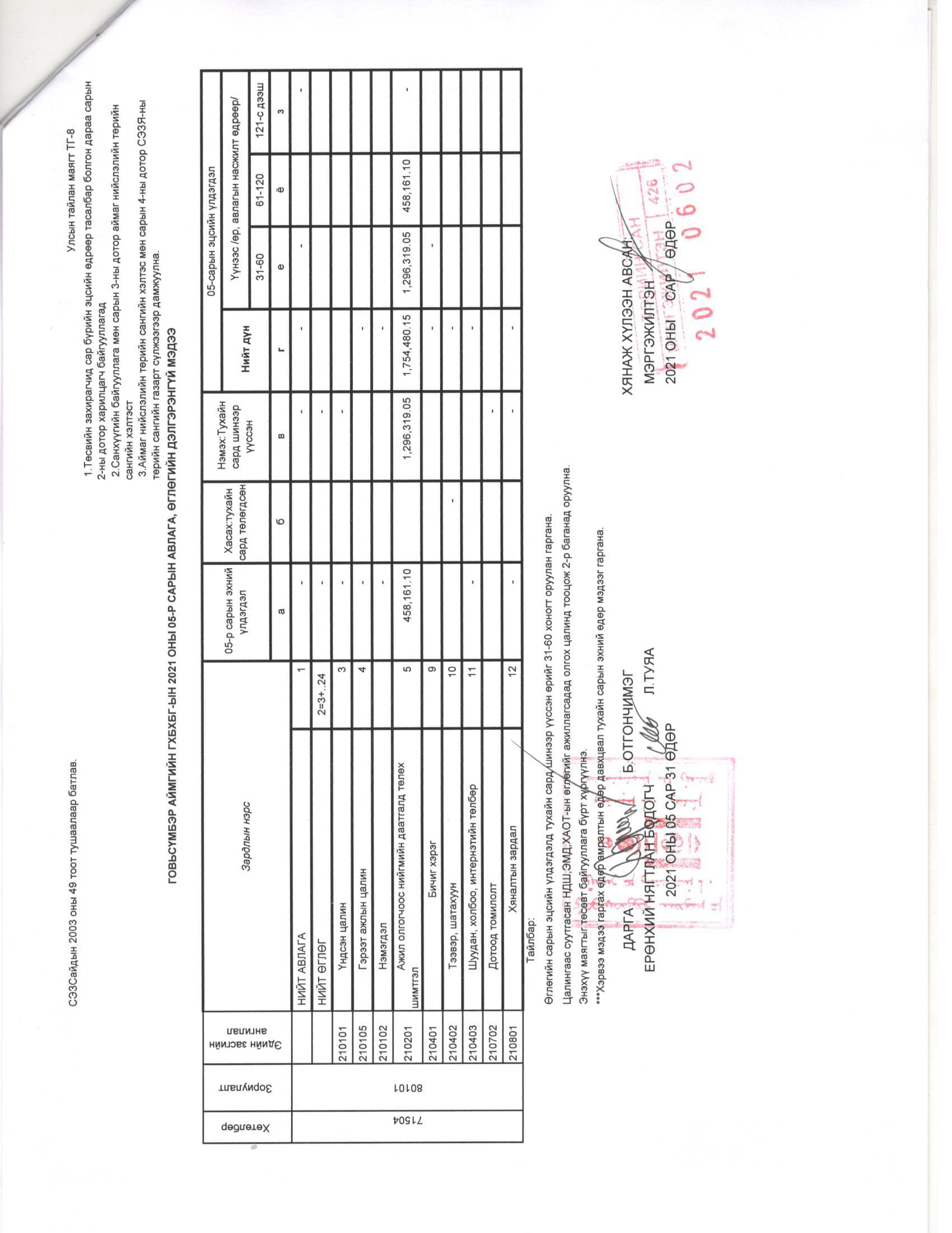 САНХҮҮГИЙН ХЯНАЛТ ШАЛГАЛТЫН ТАЙЛАН, АКТ, ДҮГНЭЛТ АЛБАН ШААРДЛАГА ЗӨВЛӨМЖ