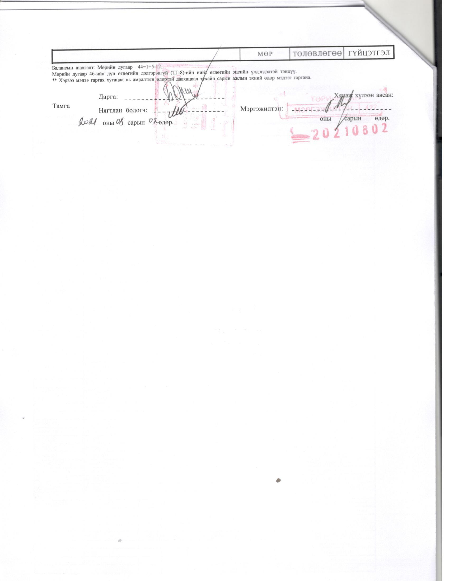 ТӨСВИЙН ГҮЙЦЭТГЭЛИЙН МЭДЭЭ