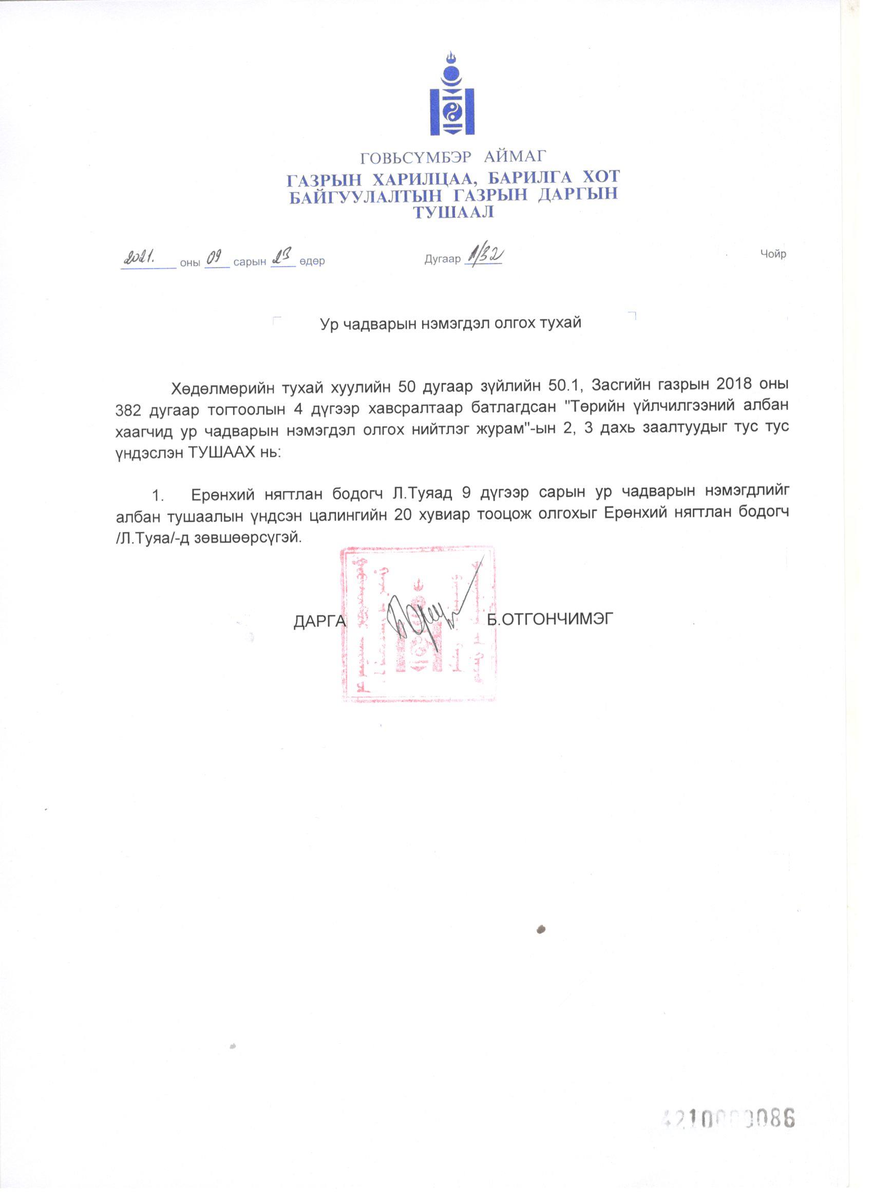 АЛБАН ТУШААЛЫН ТОДОРХОЙЛОЛТ
