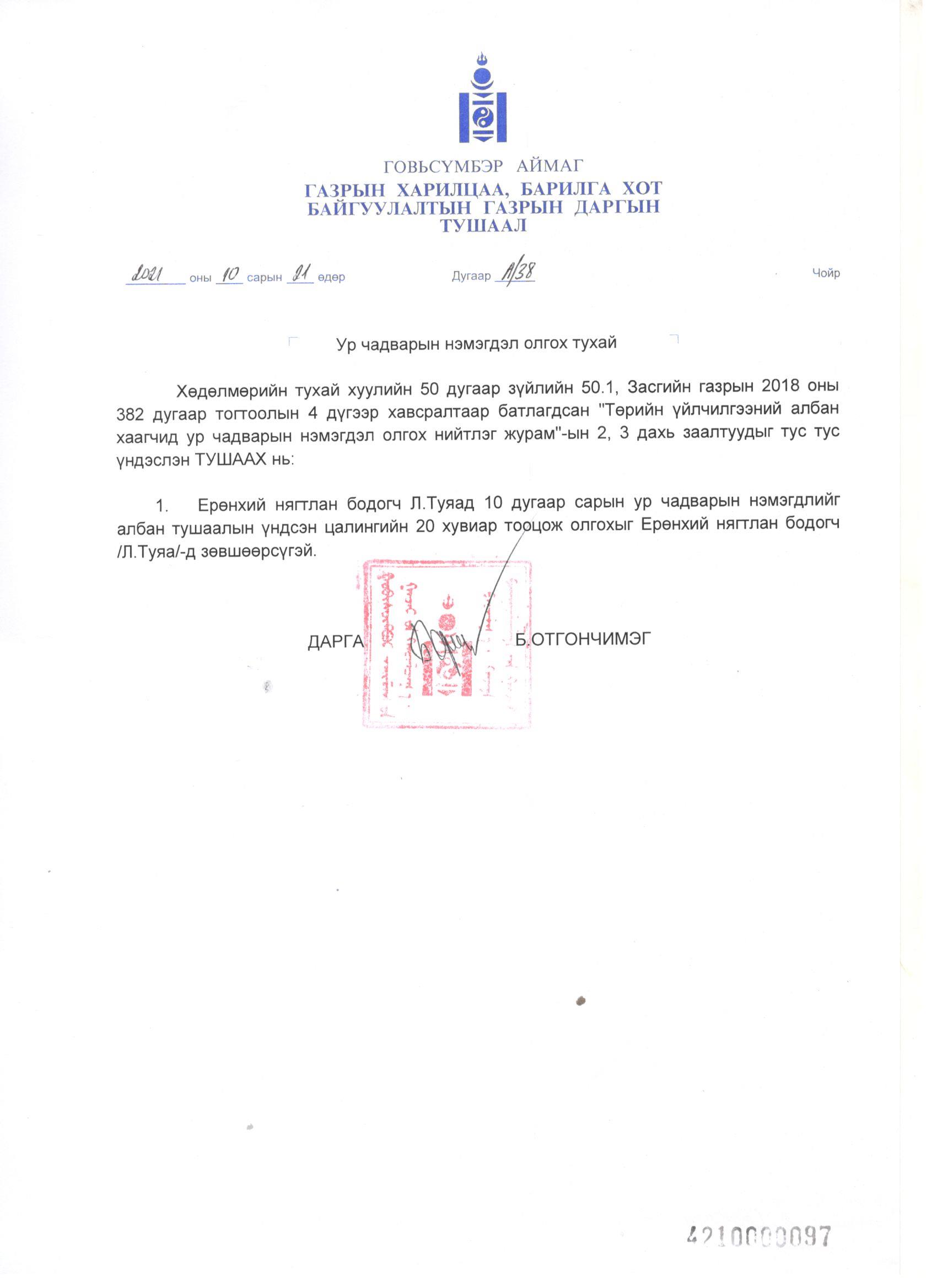 АЛБАН ТУШААЛЫН ТОДОРХОЙЛОЛТ