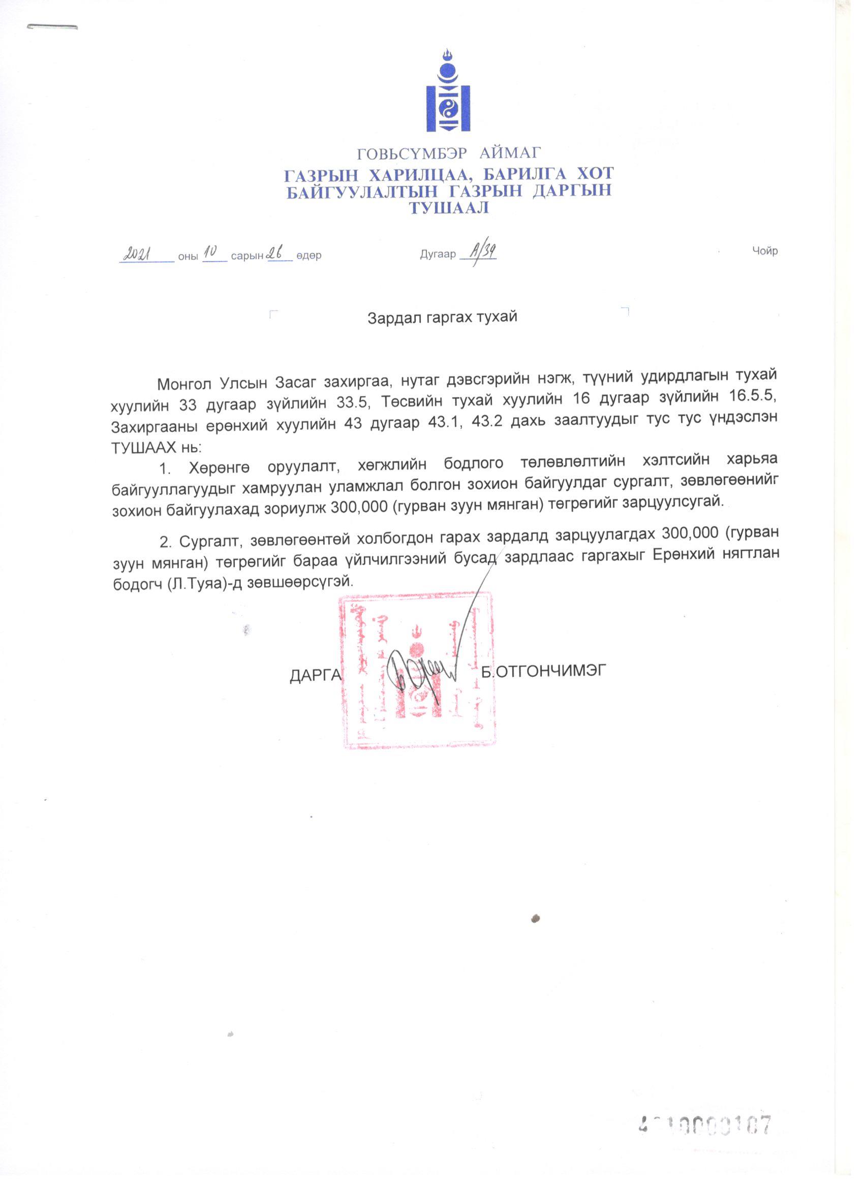 ӨРГӨДӨЛ, ГОМДОЛ ШИЙДВЭРЛЭЛТИЙН ТАЙЛАН МЭДЭЭ