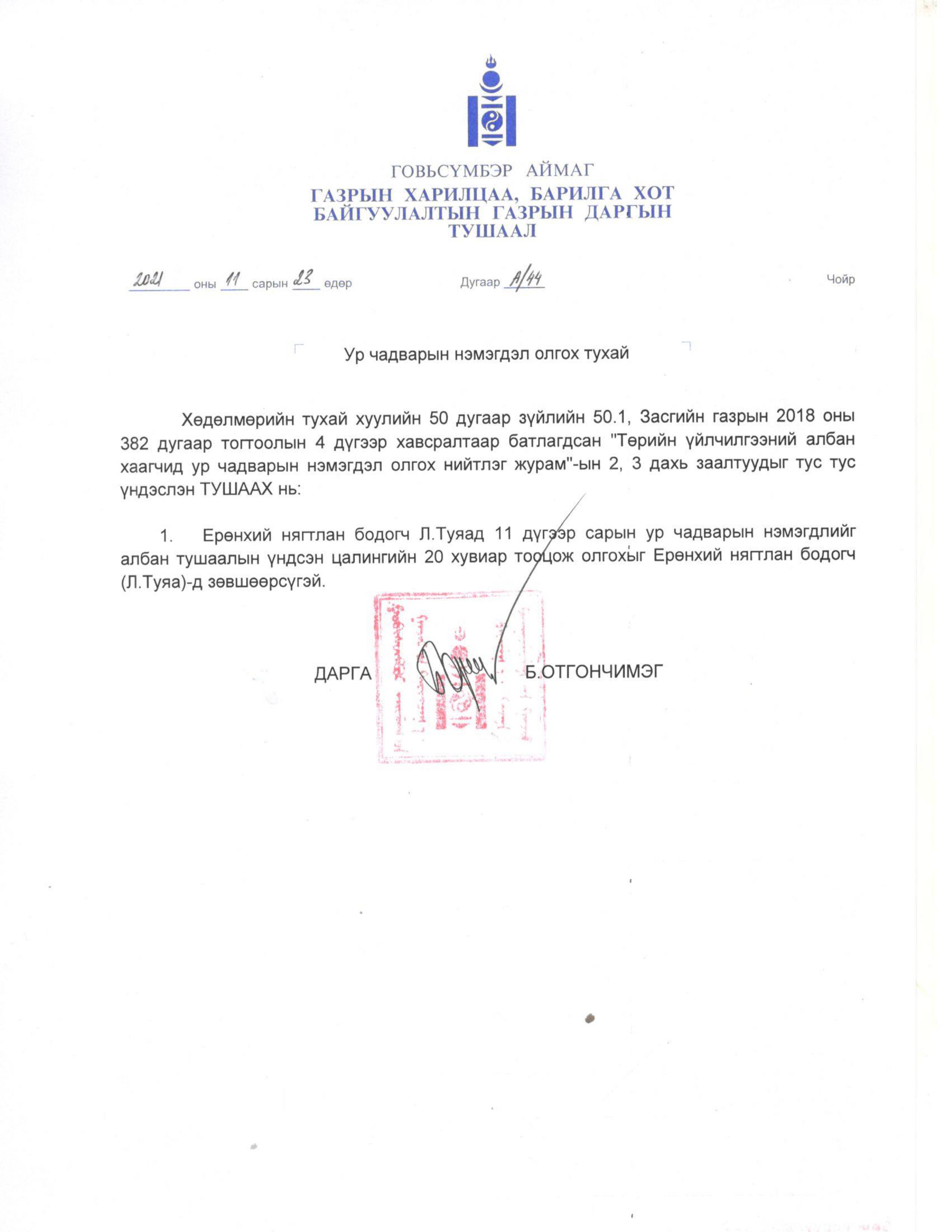 АЛБАН ТУШААЛЫН ТОДОРХОЙЛОЛТ