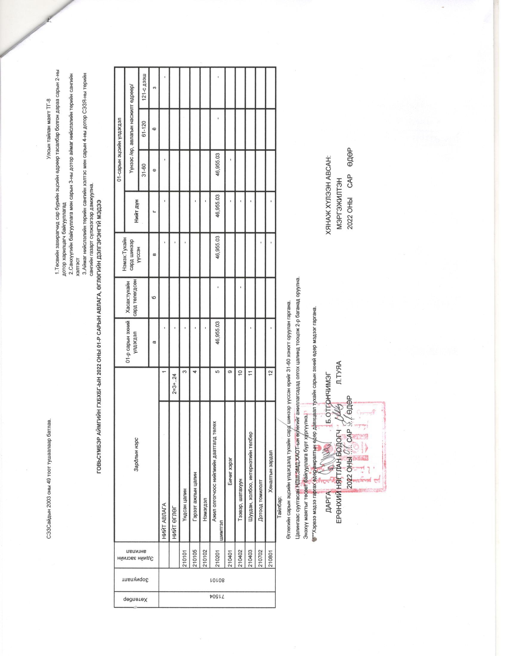 Төсвийн гүйцэтгэийн мэдээ 1 сар