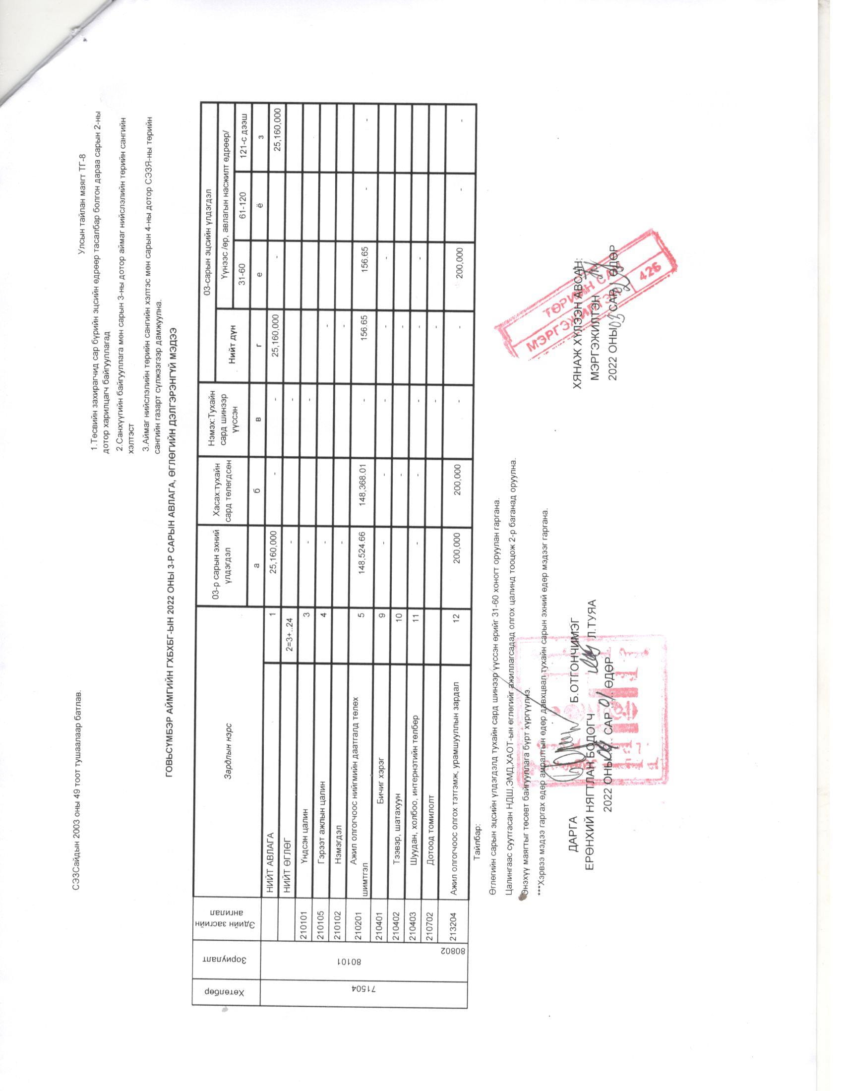 Төсвийн гүйцэтгэл 3 сар
