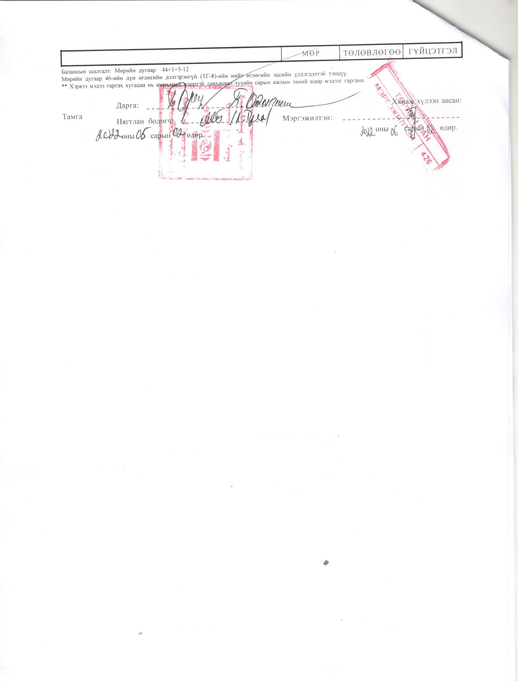 ТӨСВИЙН ГҮЙЦЭТГЭЛИЙН МЭДЭЭ
