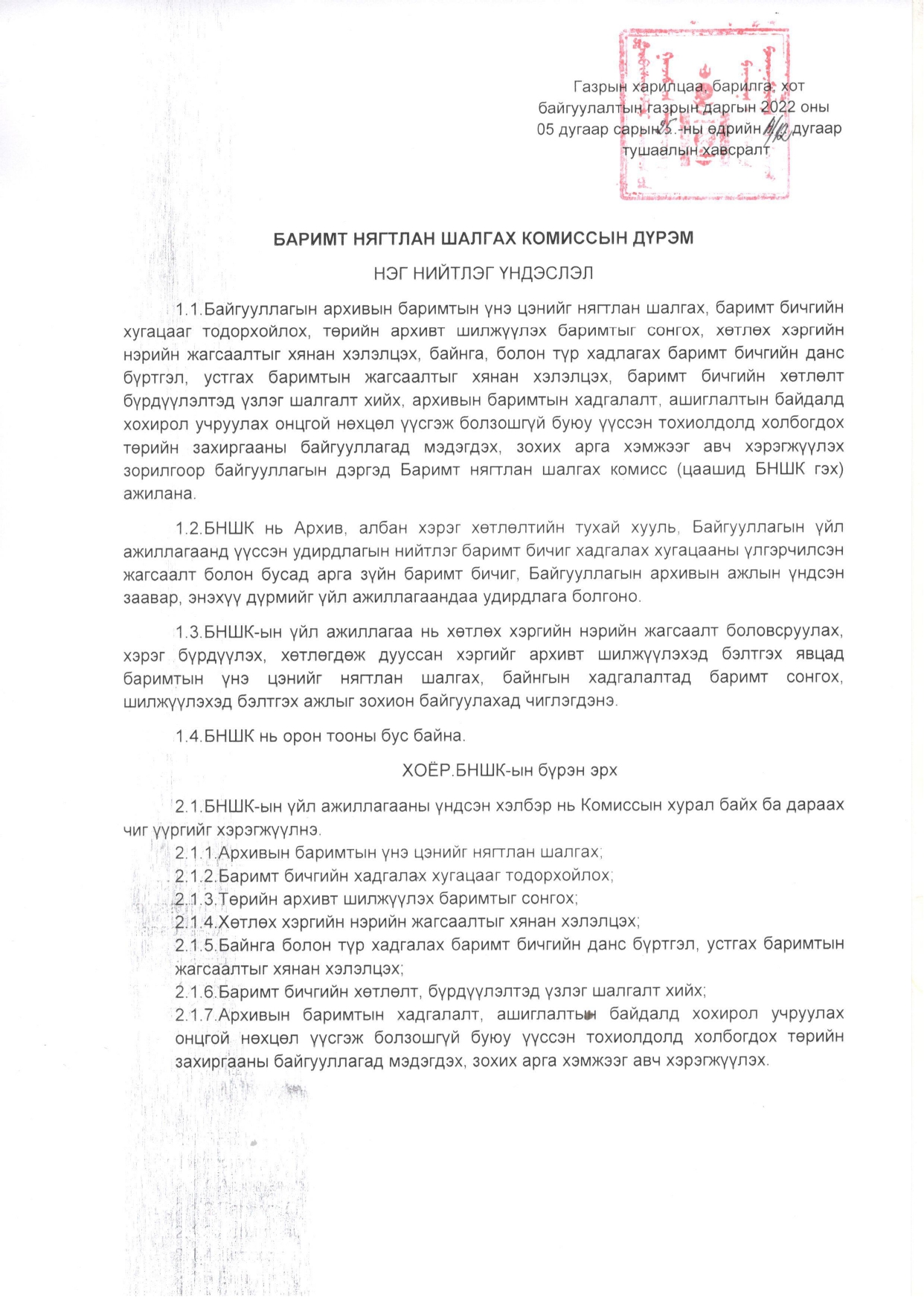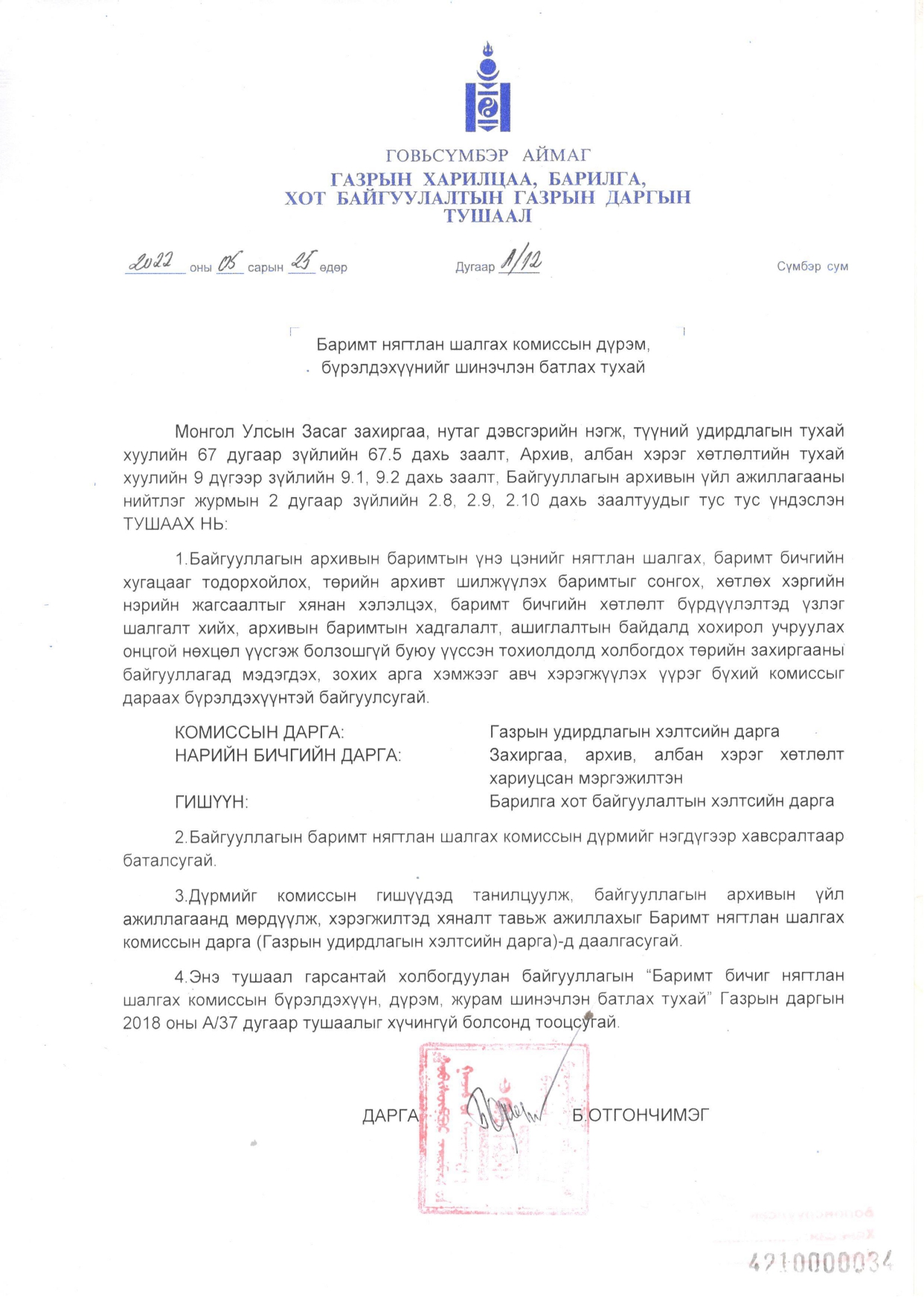 Баримт нягтлан шалгах комиссын дүрэм, бүрэлдэхүүнийг шинэчлэн батлах тухай