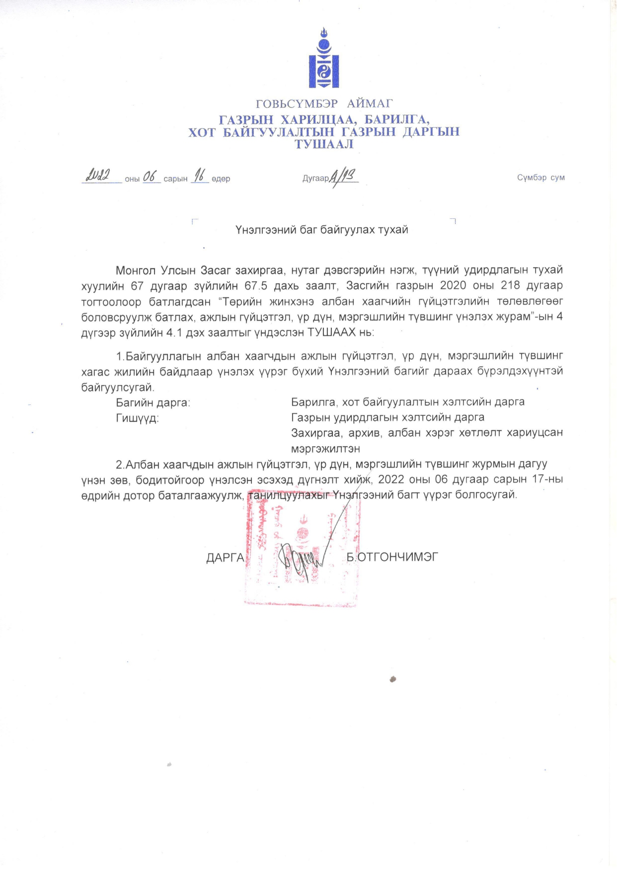 АЛБАН ХААГЧИЙН АЖЛЫН ГҮЙЦЭТГЭЛИЙГ ҮНЭЛЭХ ЖУРАМ