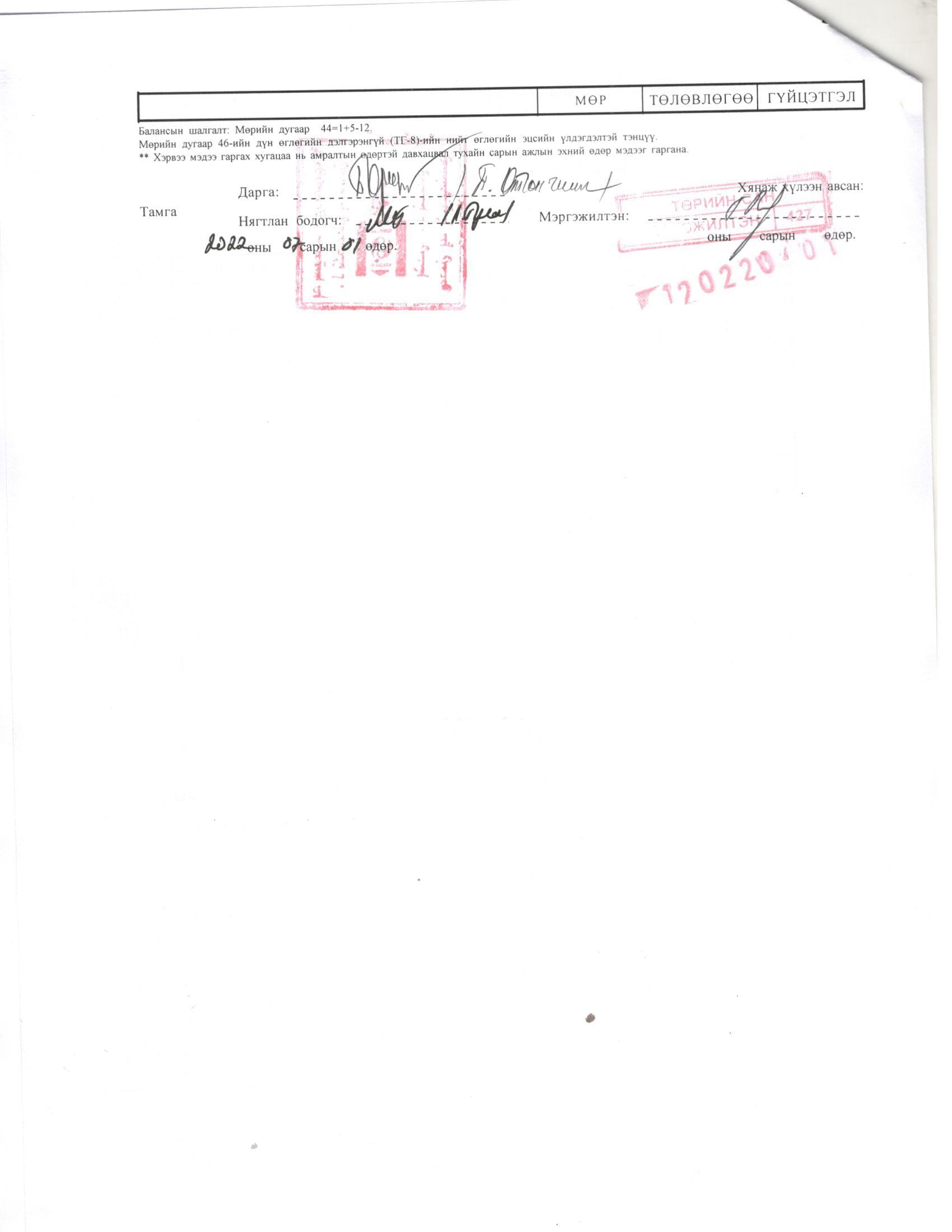 ТӨСВИЙН ГҮЙЦЭТГЭЛИЙН МЭДЭЭ