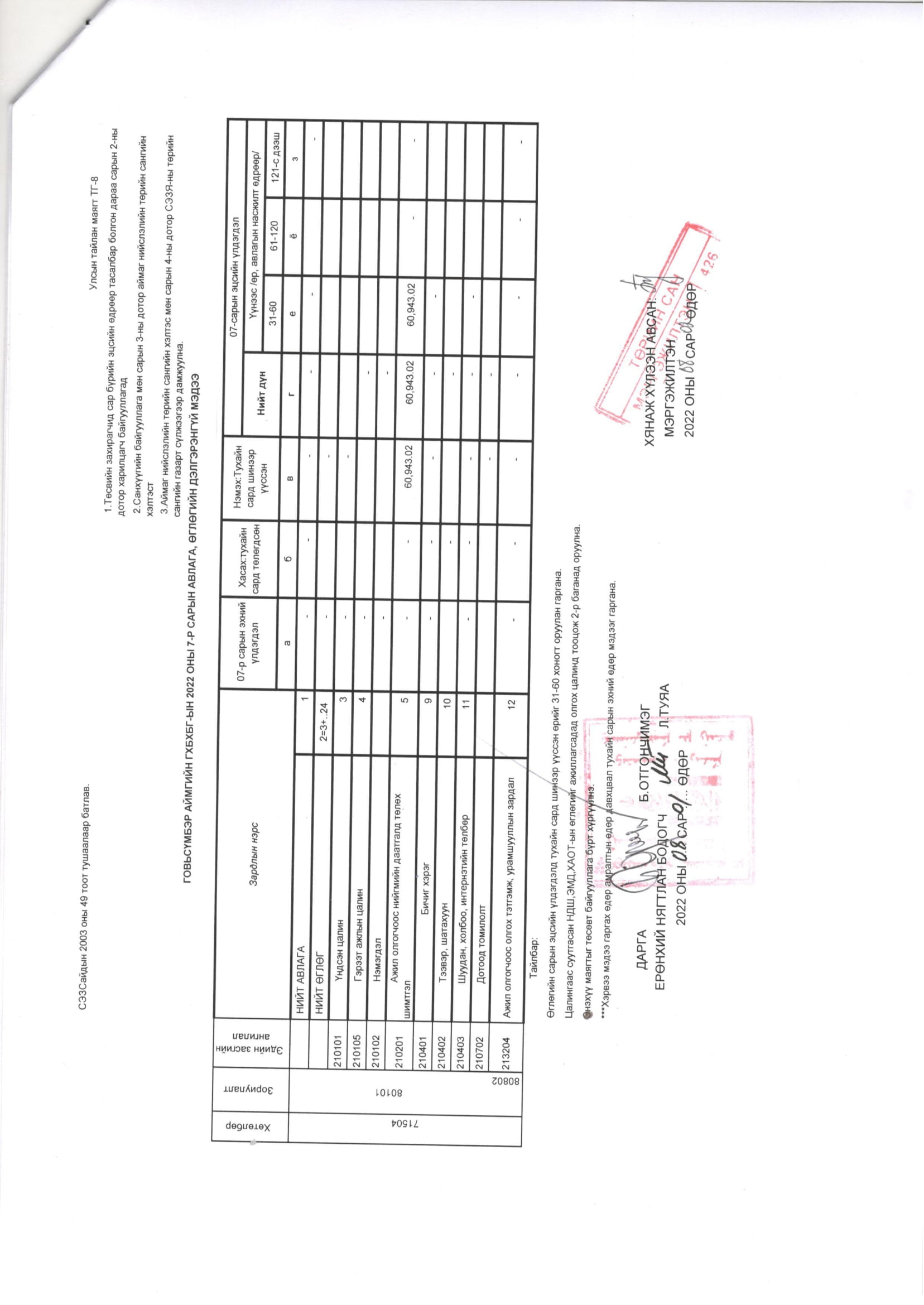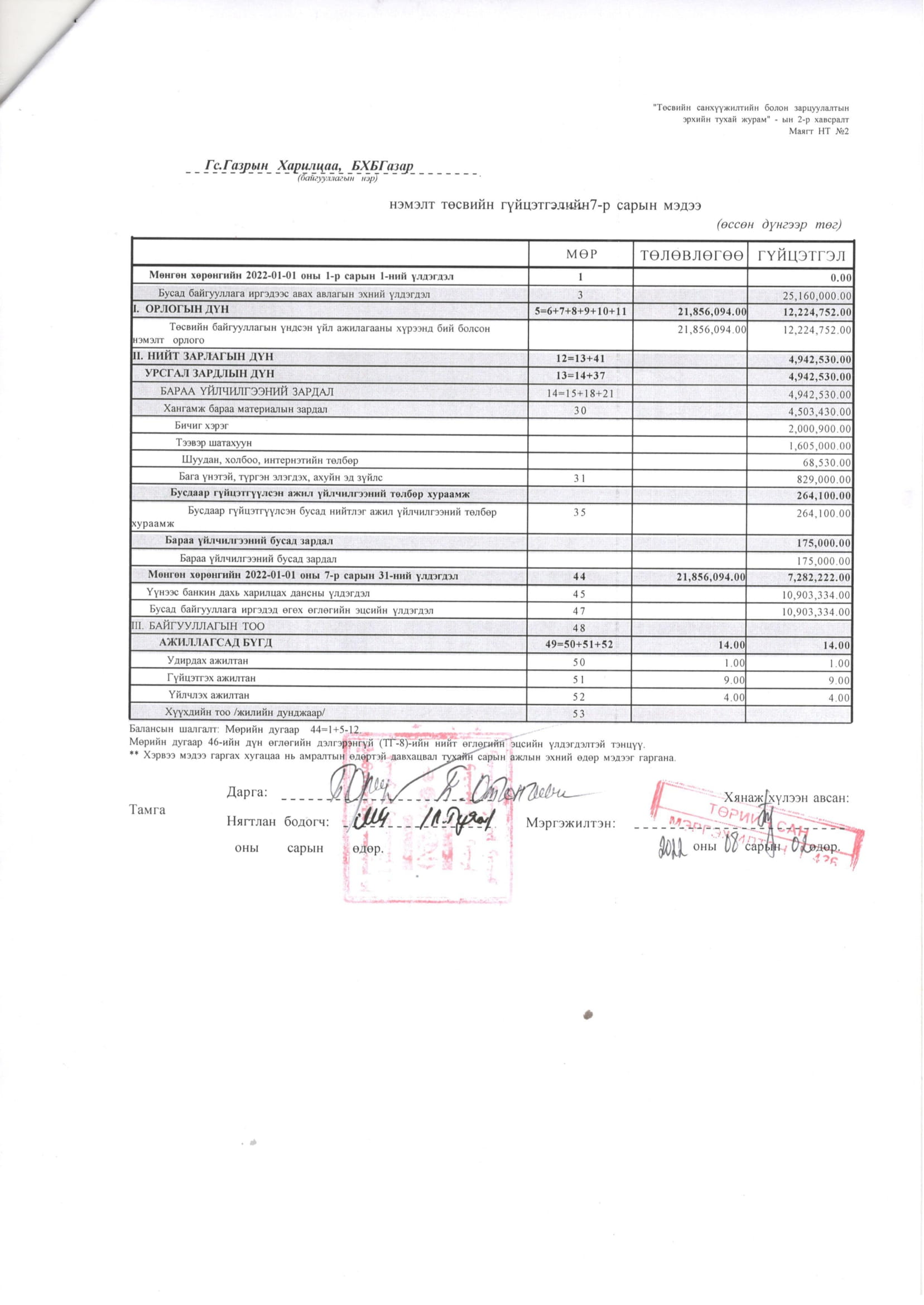 Төсвийн гүйцэтгэл 7 сар