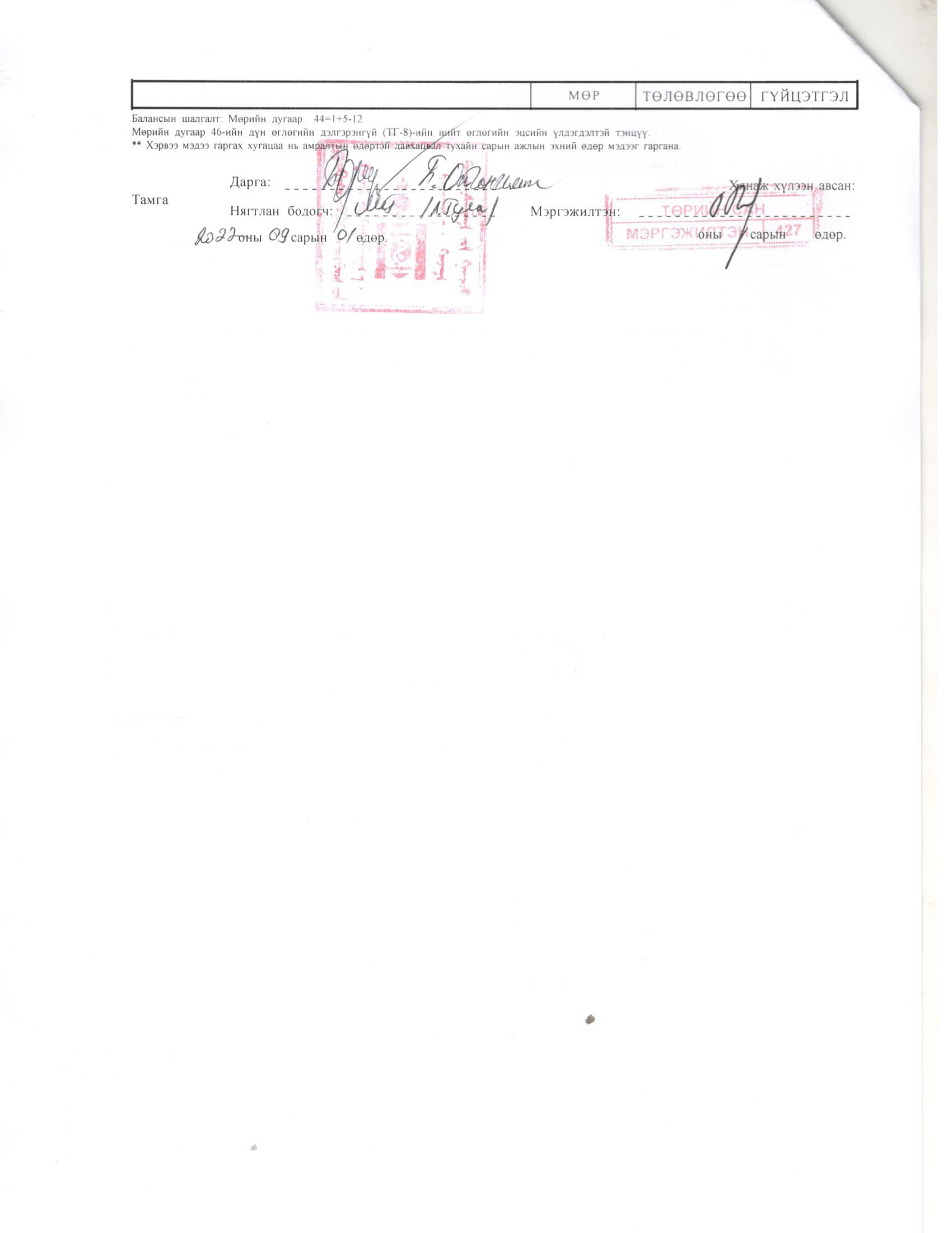 ТӨСВИЙН ГҮЙЦЭТГЭЛИЙН МЭДЭЭ