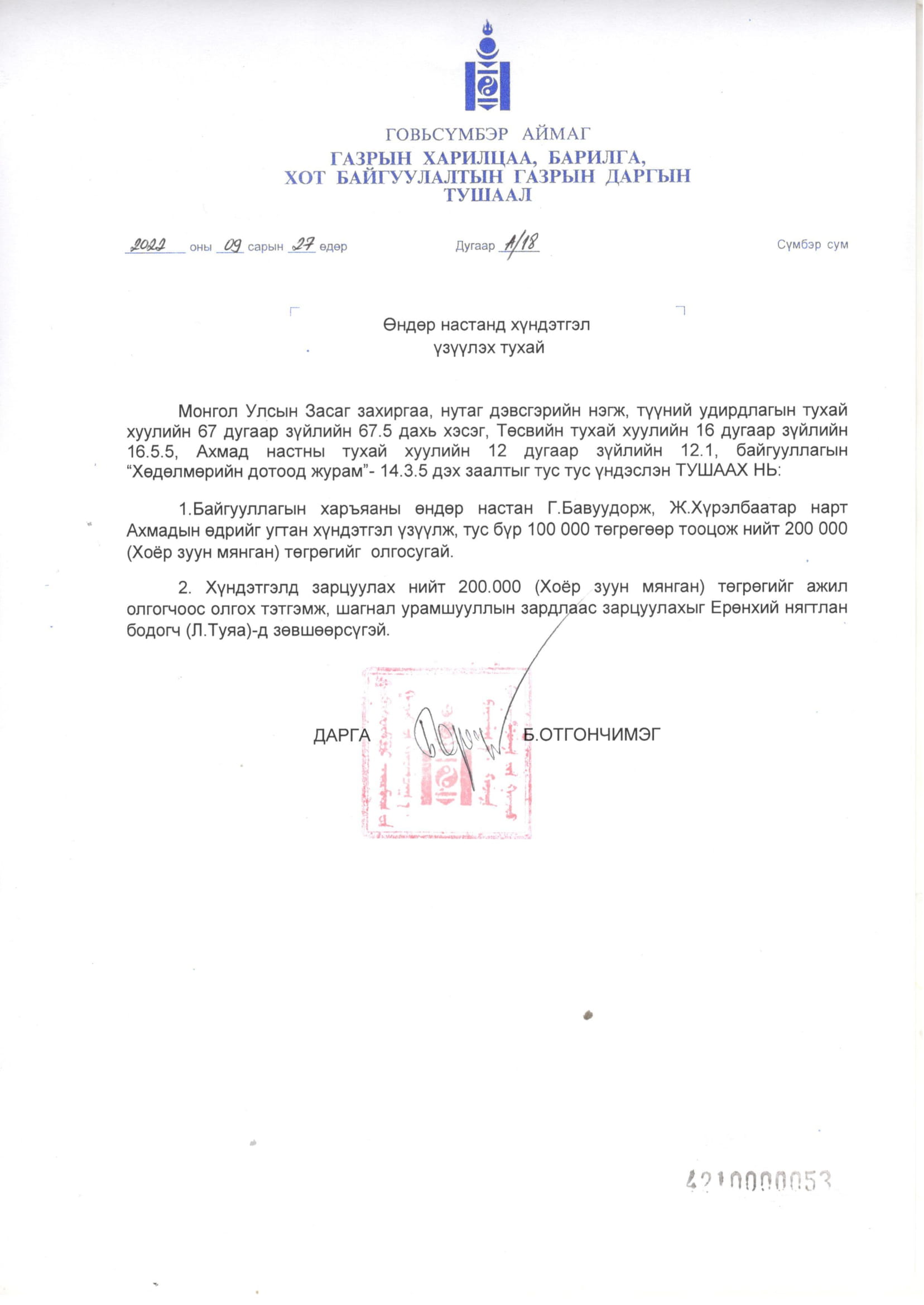 ДЭЭД ГАЗРЫН ТУШААЛ, ШИЙДВЭР