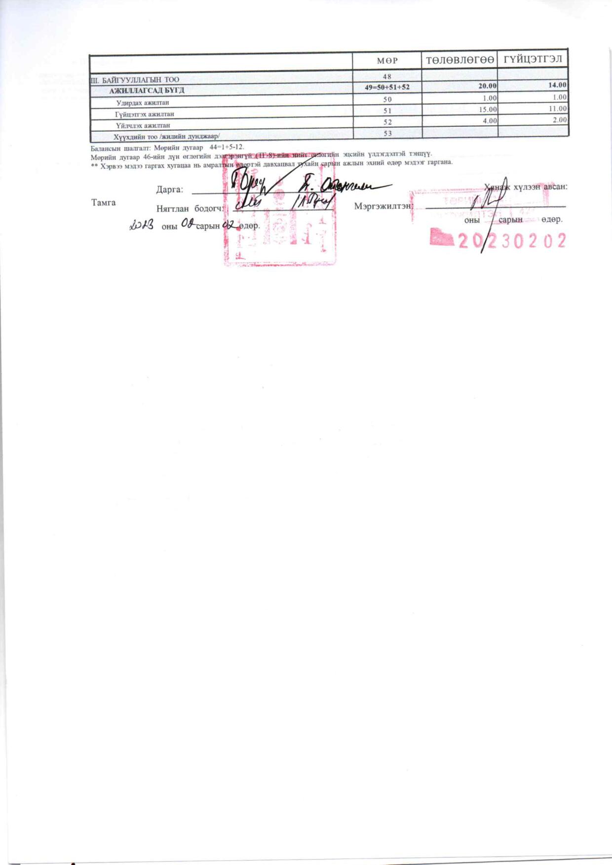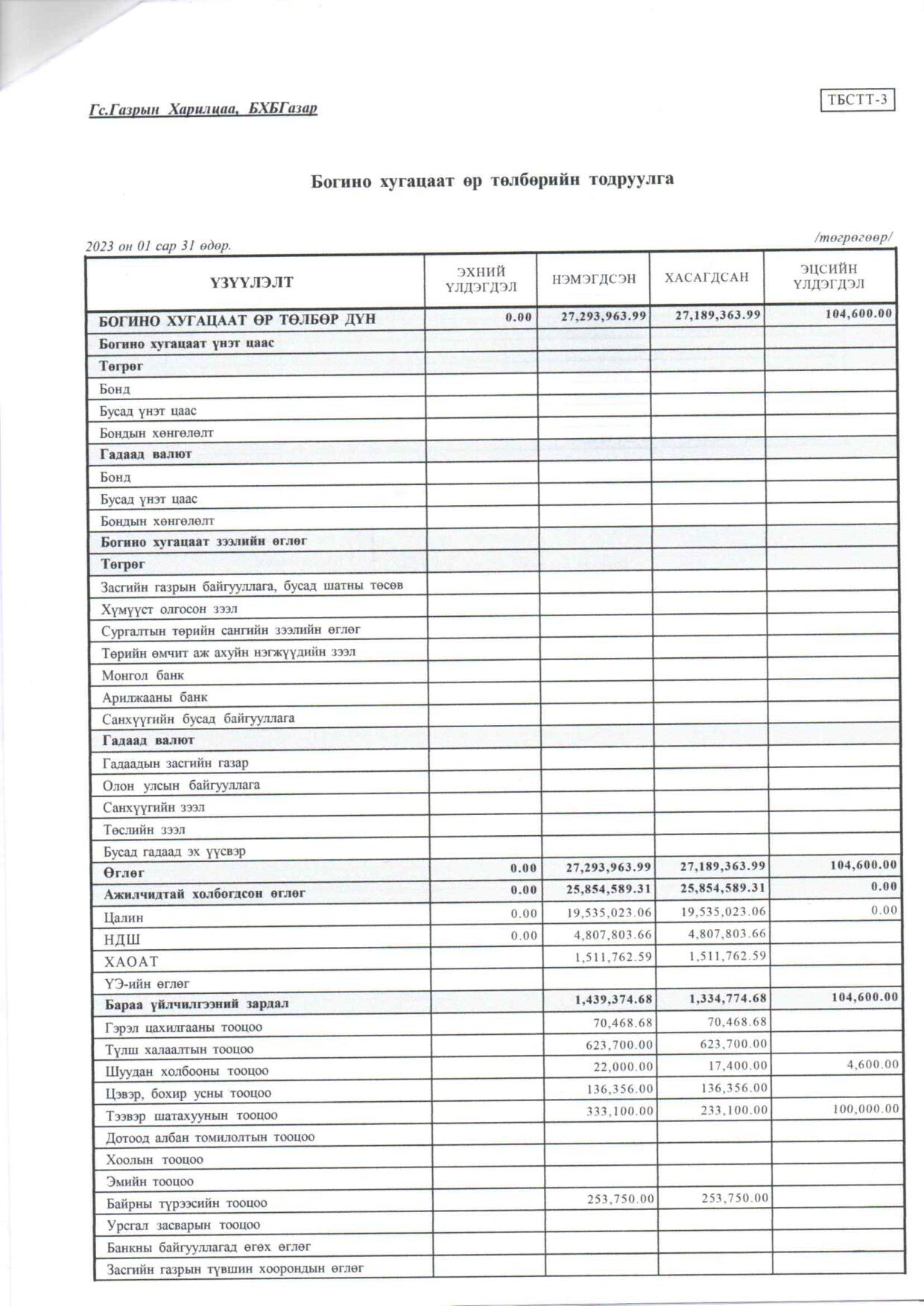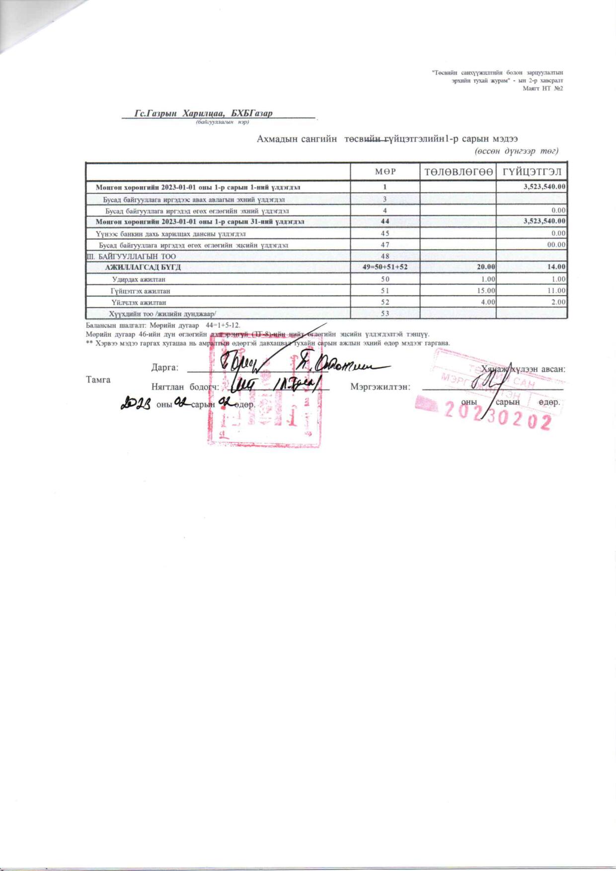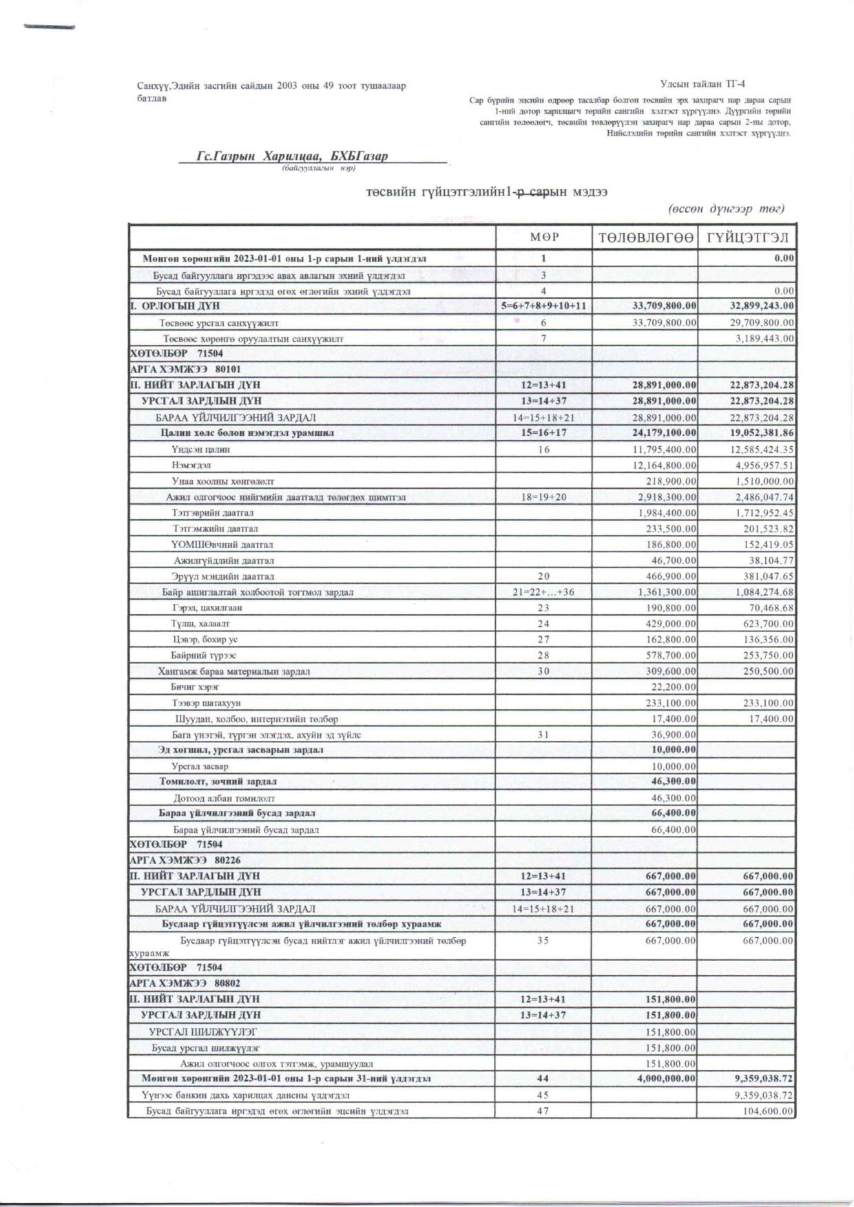 ТӨСВИЙН ГҮЙЦЭТГЭЛИЙН БИЕЛЭЛТ БОЛОН ХАГАС БҮТЭН ЖИЛИЙН САНХҮҮГИЙН ТАЙЛАН
