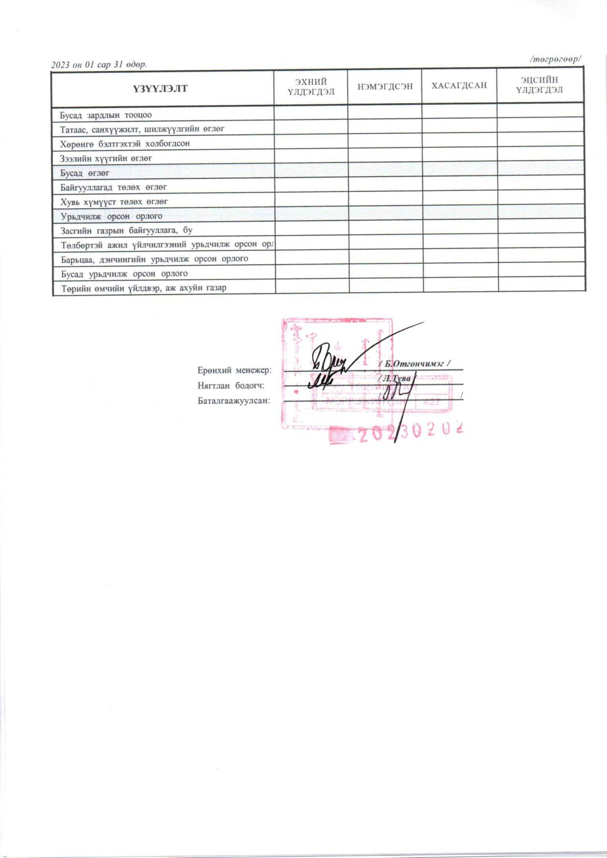 төсвийн гүйцэтгэлийн мэдээ 1 сар