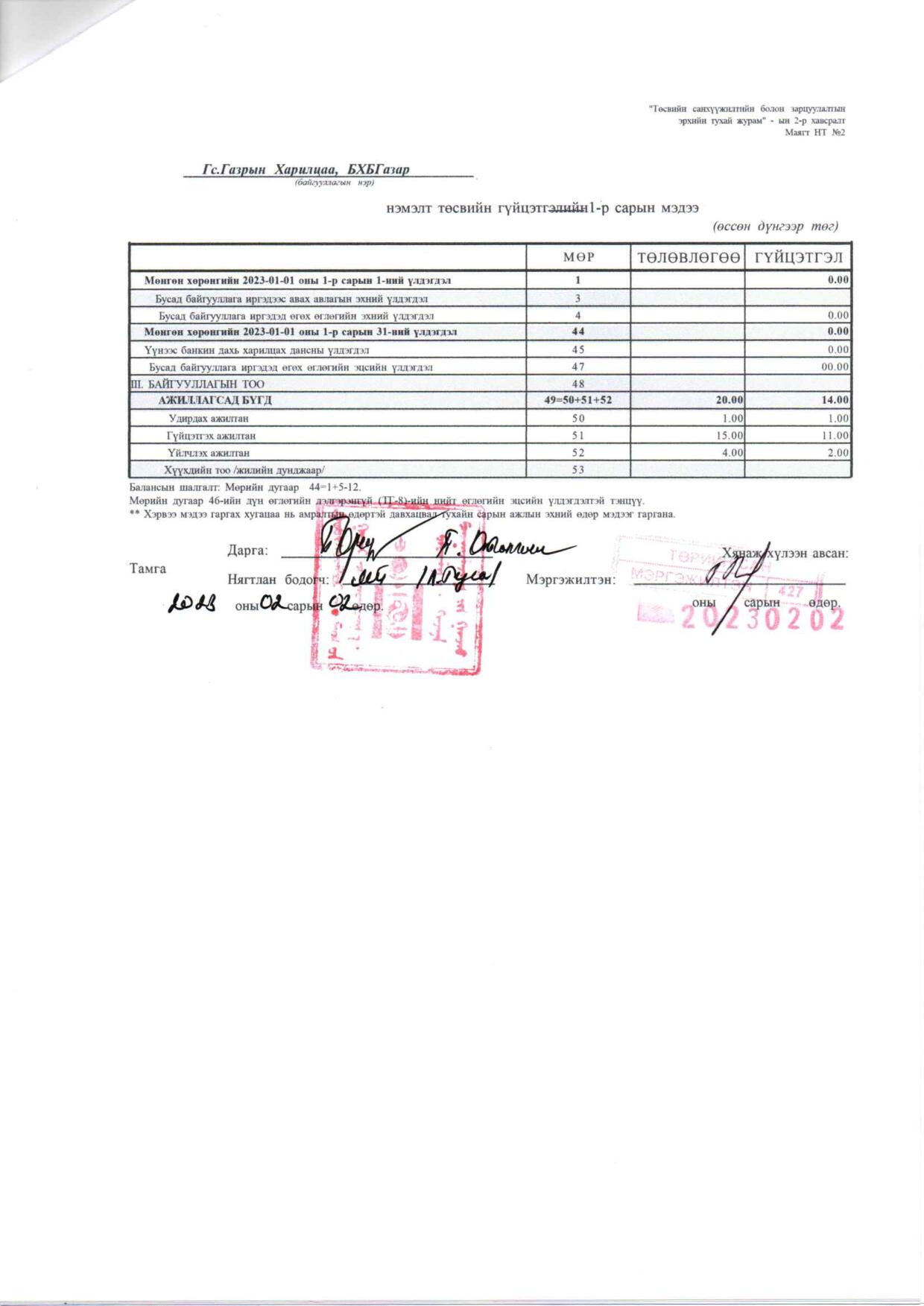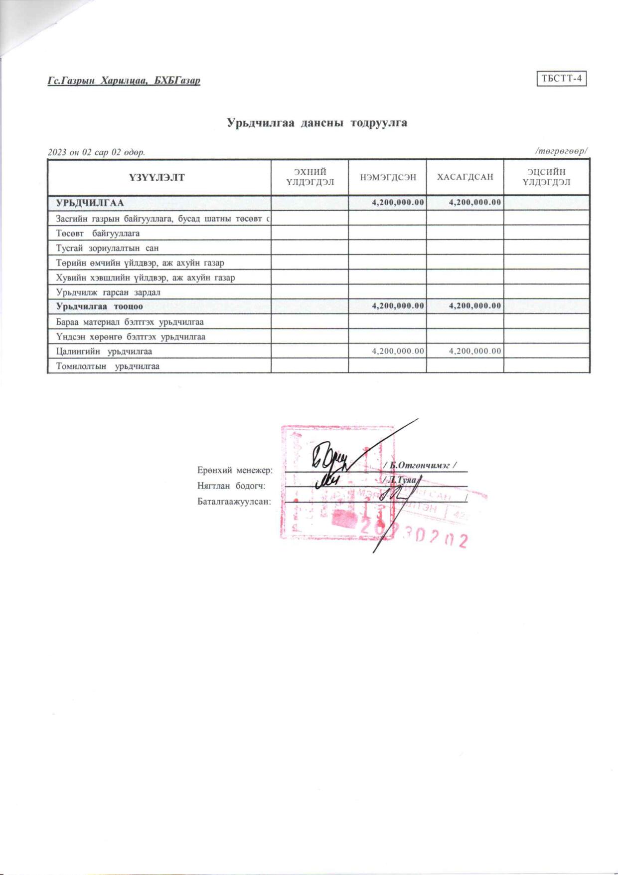 ТӨСВИЙН ГҮЙЦЭТГЭЛИЙН МЭДЭЭ